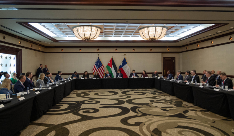 وأكد جلالة الملك، خلال اللقاء الذي حضره سمو الأمير هاشم بن عبدالله الثاني، حرص الأردن على تعميق الشراكة الاستراتيجية مع الولايات المتحدة والبناء على الأولويات الاقتصادية المشتركة.
