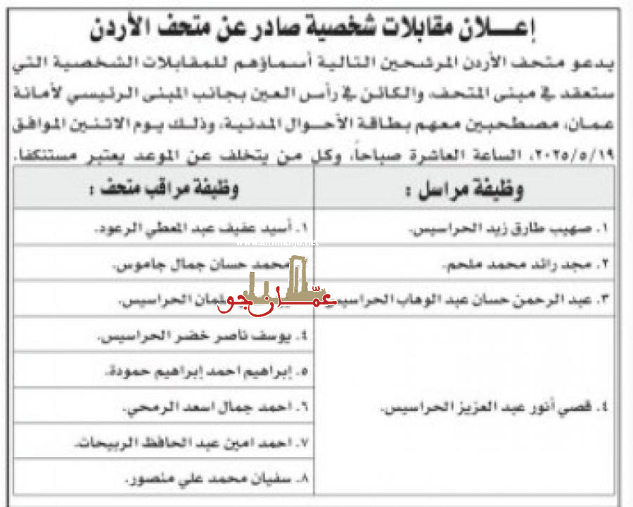 عمان جو- أعلنت مؤسسات رسمية، اليوم الإثنين، عن حاجتها لتعبئة وظائف شاغرة، فيما دعت أخرى مرشحين لإجراء المقابلات الشخصية.