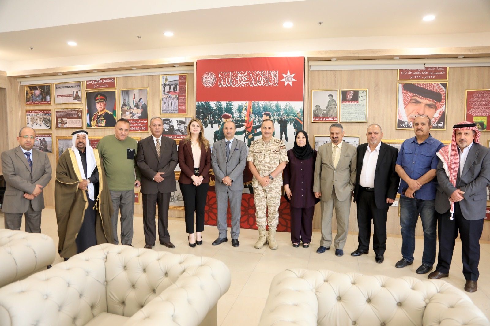 عمان جو- زار وفد من أعضاء ملتقى النخبة الذي يضم عدداً من النخب الوطنية والسياسية والفكرية، امس الإثنين، مديرية الإعلام العسكري في القيادة العامة للقوات المسلحة الأردنية - الجيش العربي وكان في استقبالهم مديرها العميد الركن مصطفى الحياري.