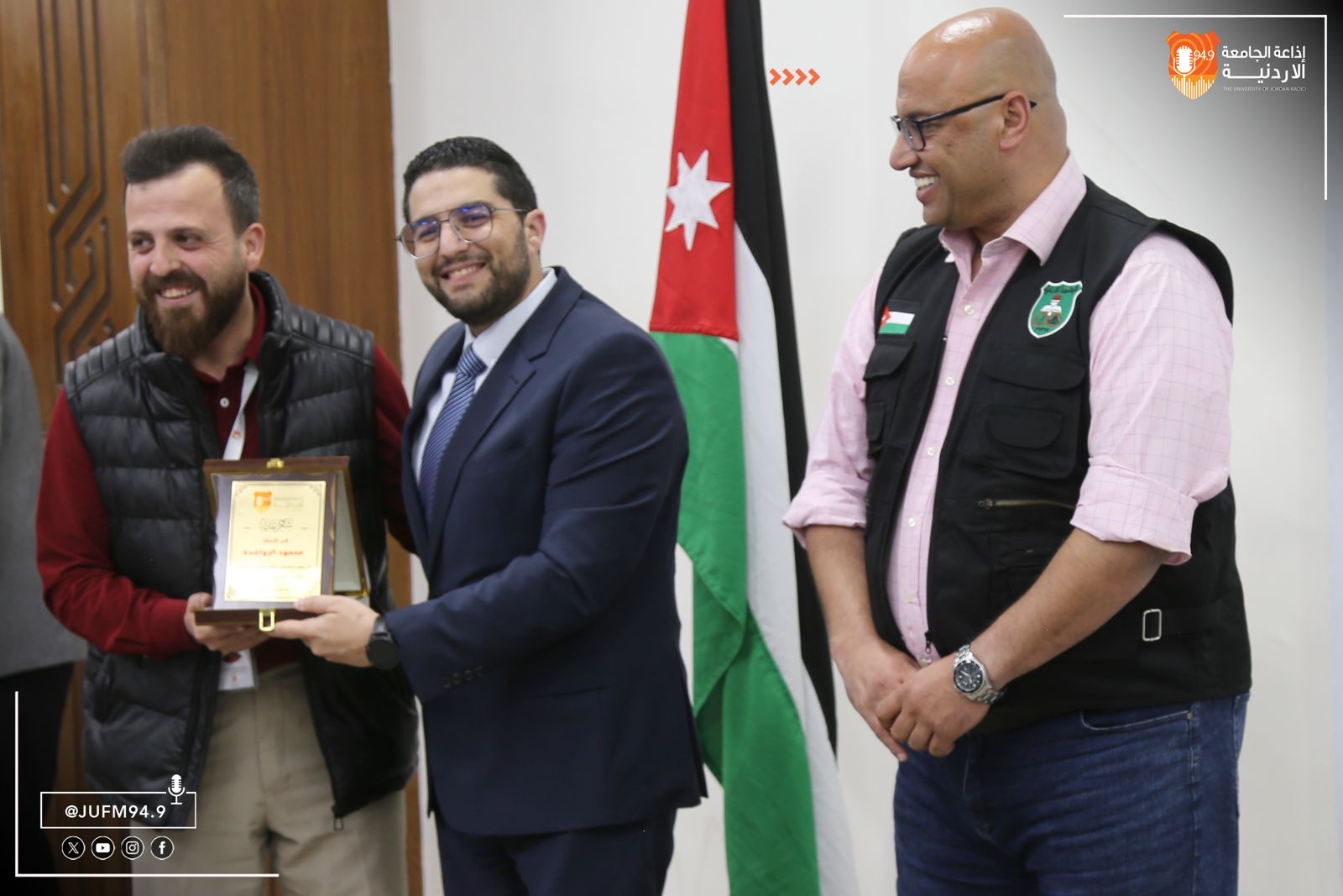احتفلت إذاعة الجامعة الأردنية بتخريج الدفعة الثامنة من طلبة مشروع "تطوع الطلبة في إذاعة الجامعة الأردنية"، برعاية نائب رئيس الجامعة للشؤون الإدارية والمالية، الأستاذ الدكتور زياد الحوامدة، مندوباً عن رئيس الجامعة الأستاذ الدكتور نذير عبيدات.
