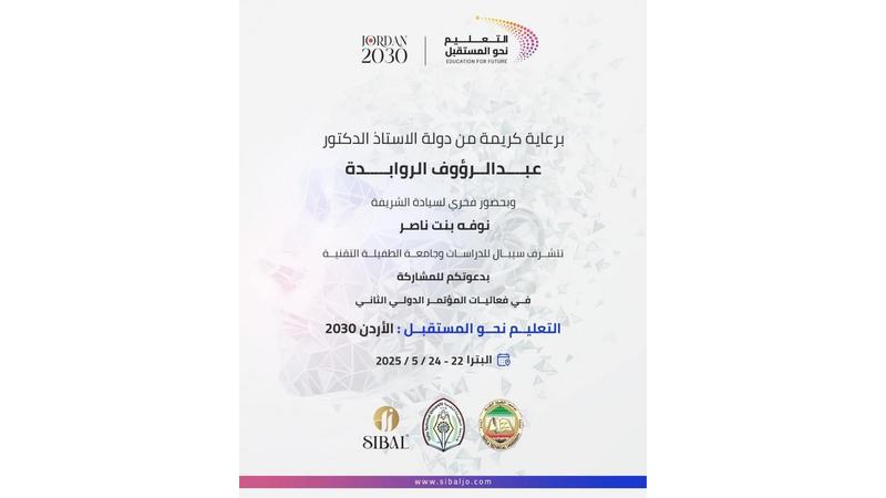 عمان جو-تستضيف جامعة الطفيلة التقنية فعاليات المؤتمر التربوي الدولي الثاني بعنوان "التعليم نحو المستقبل: الأردن 2030"، الذي سيعقد خلال الفترة من 22 إلى 24 أيار الحالي بمشاركة نخبة من الأكاديميين والخبراء التربويين من داخل الأردن وخارجه.