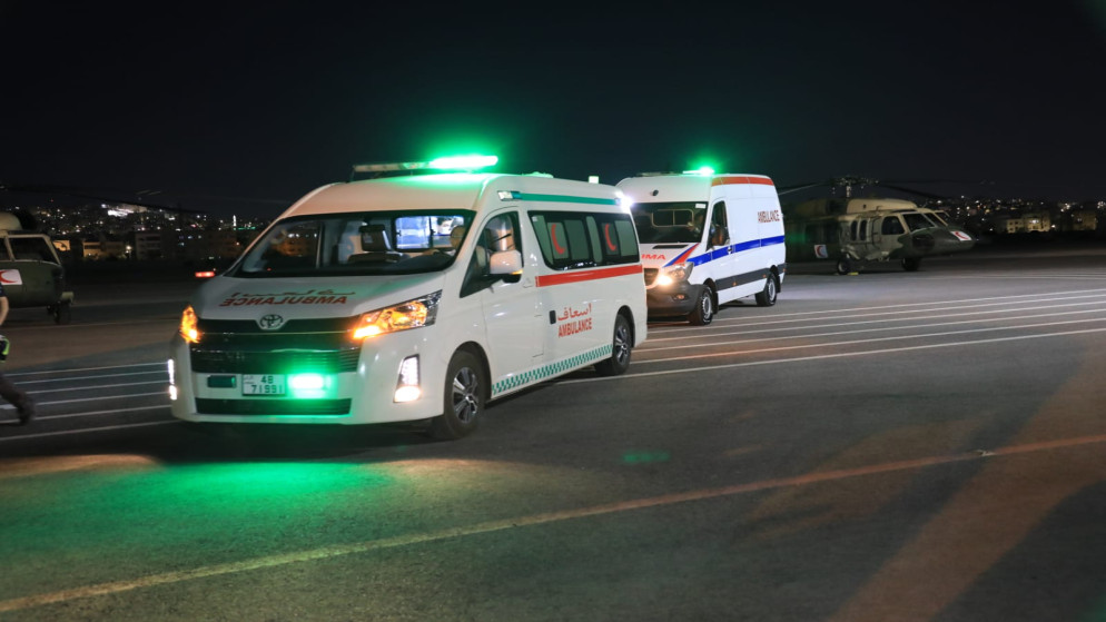 كما يتم أيضًا تنفيذ الإجلاء الجوي عبر مروحيات تابعة للقوات المسلحة الأردنية حسب الحاجة وظروف كل حالة.