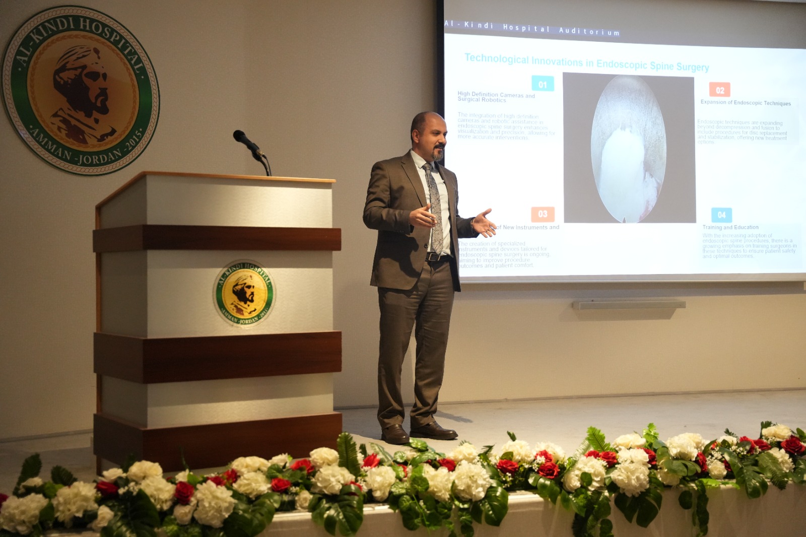 والقى الدكتور بدر عبيدات استشاري جراحة الدماغ والاعصاب محاضرة متخصصة بعنوان Targeted Endoscopic Spine Procedures Equals Big Achievement