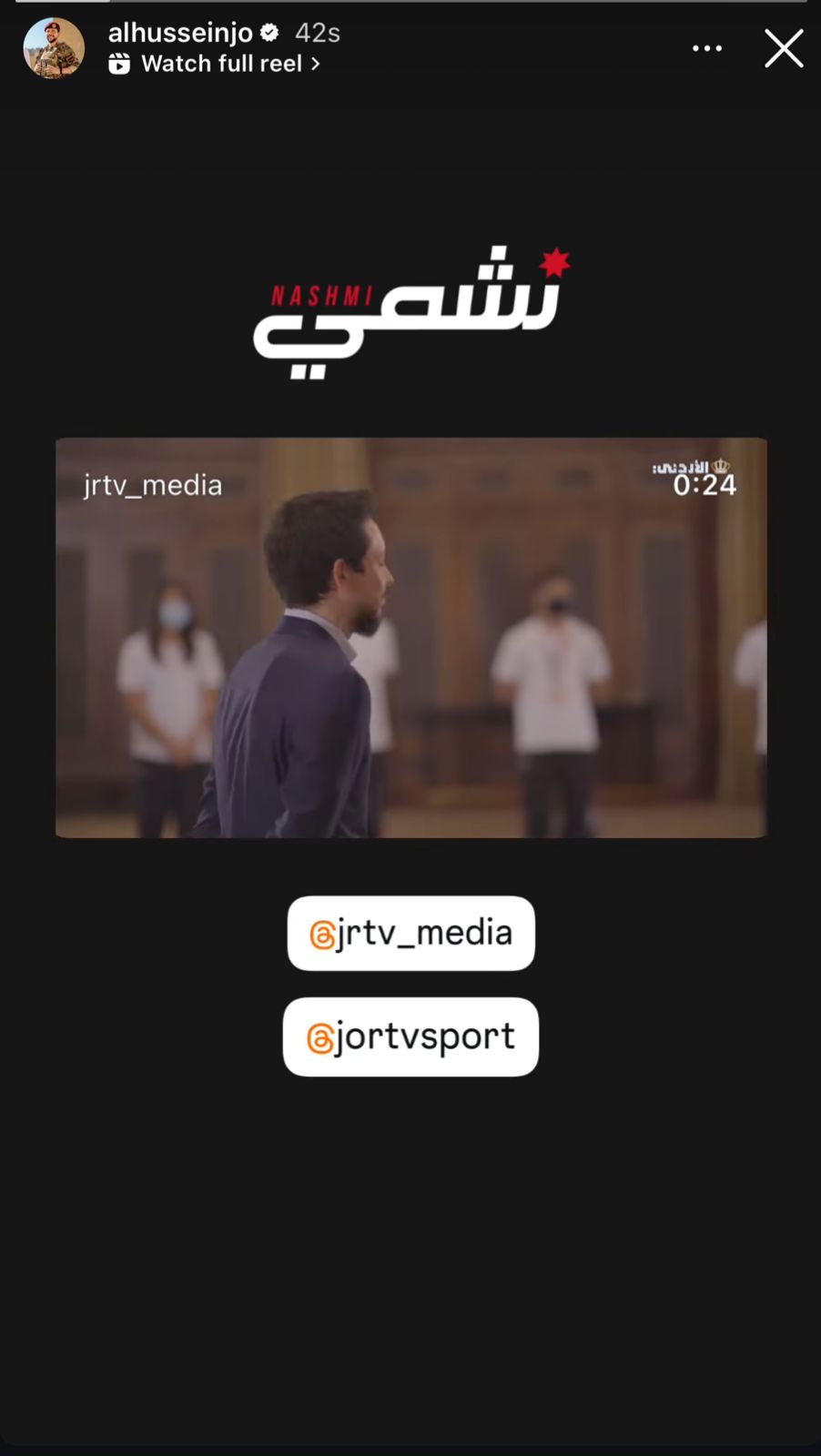 عمان جو- أعاد سمو ولي العهد الأمير الحسين اليوم نشر مقطع تشويقي عن وثائقي "نشمي" الذي يعرض على شاشتي القناة الأولى والقناة الرياضية في التلفزيون الأردني