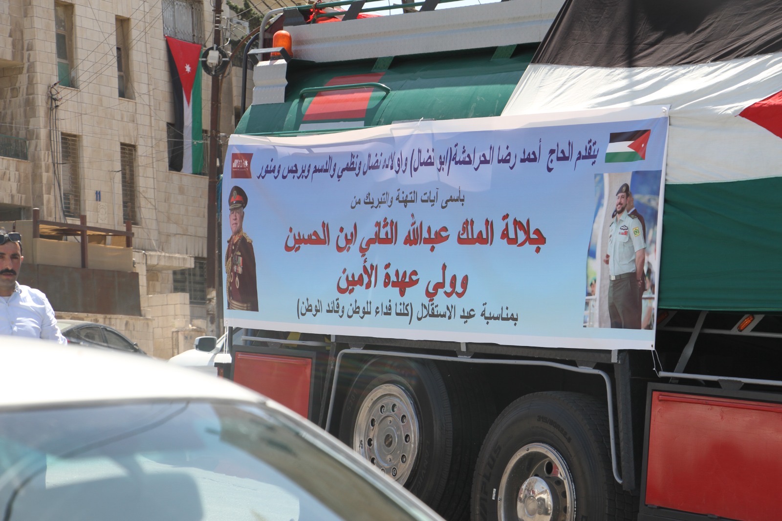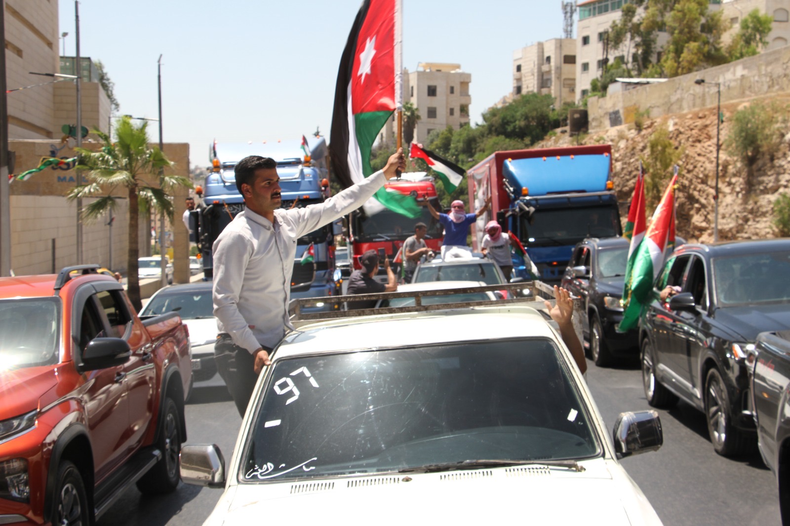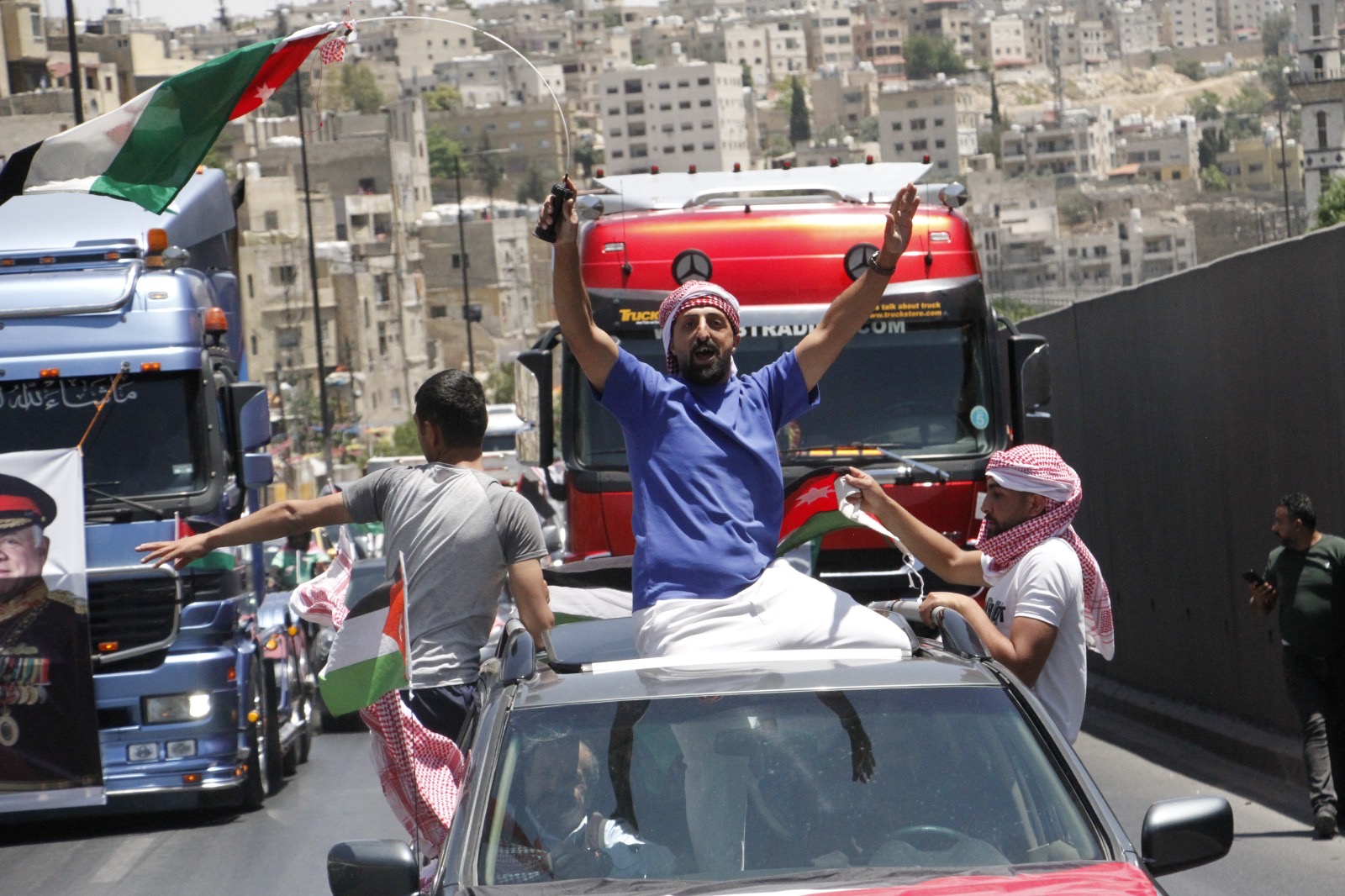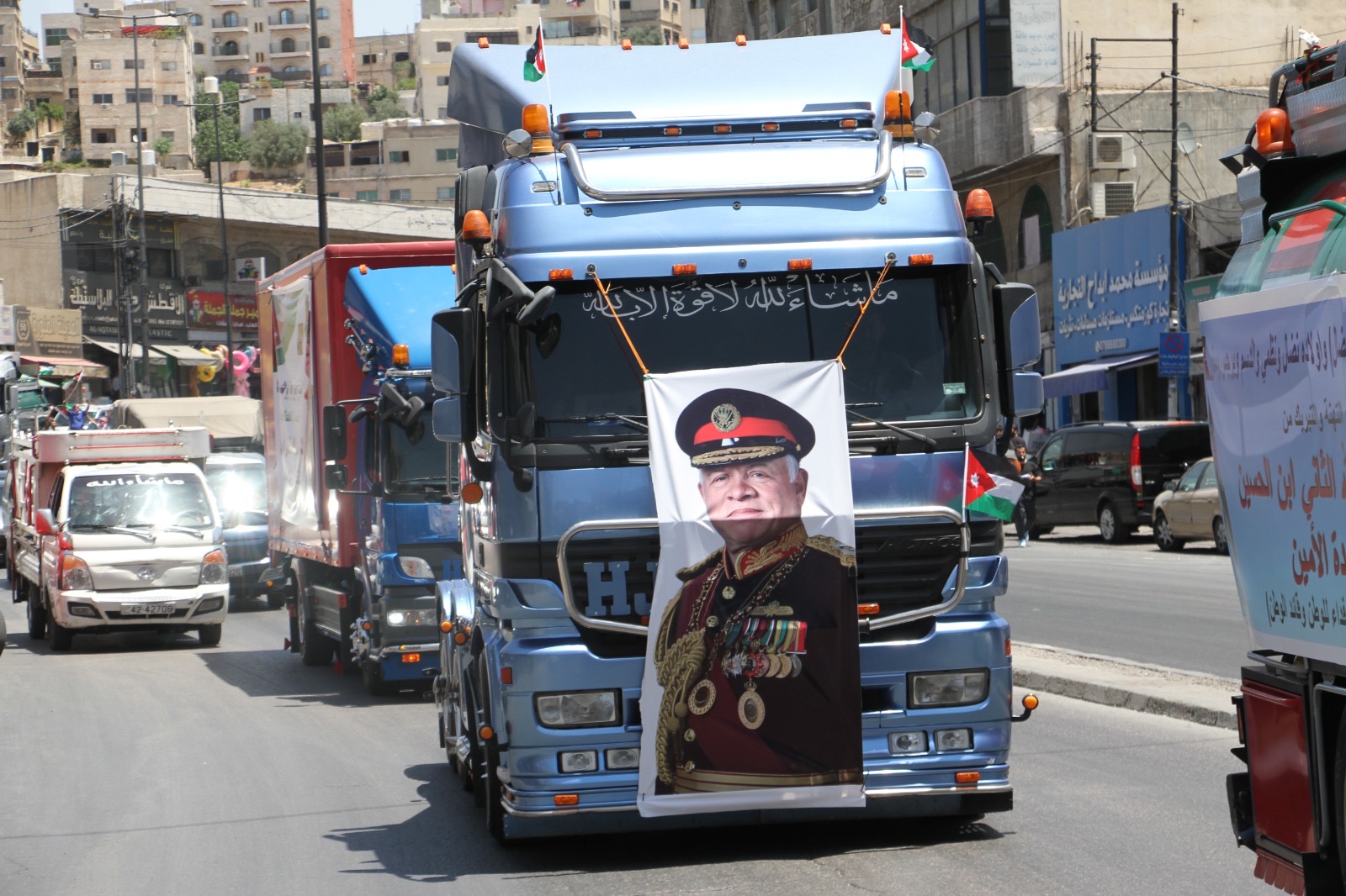 وجالت المسيرة في العاصمة عمان مؤكدة الوقوف خلف القيادة الهاشمية ومهنئة الشعب الأردني بذكرى الاستقلال.