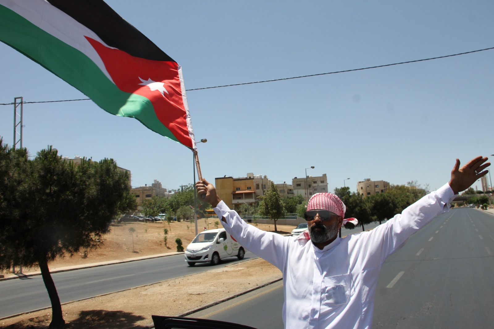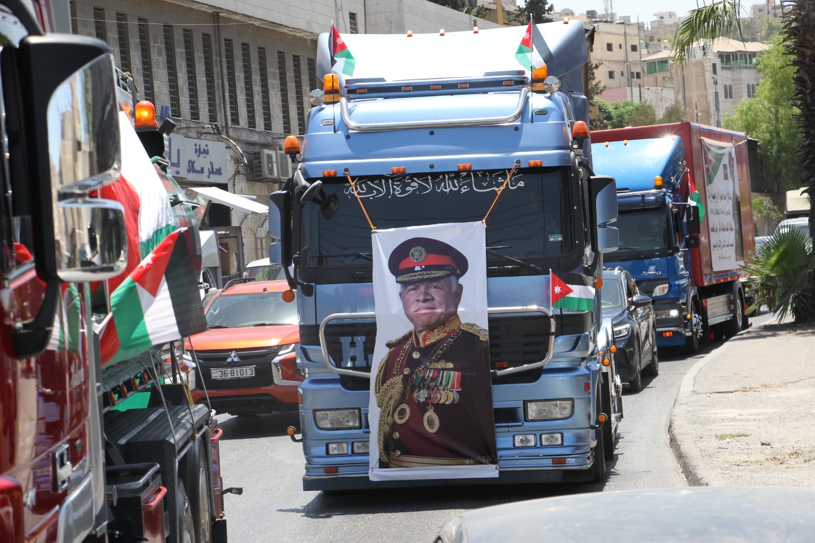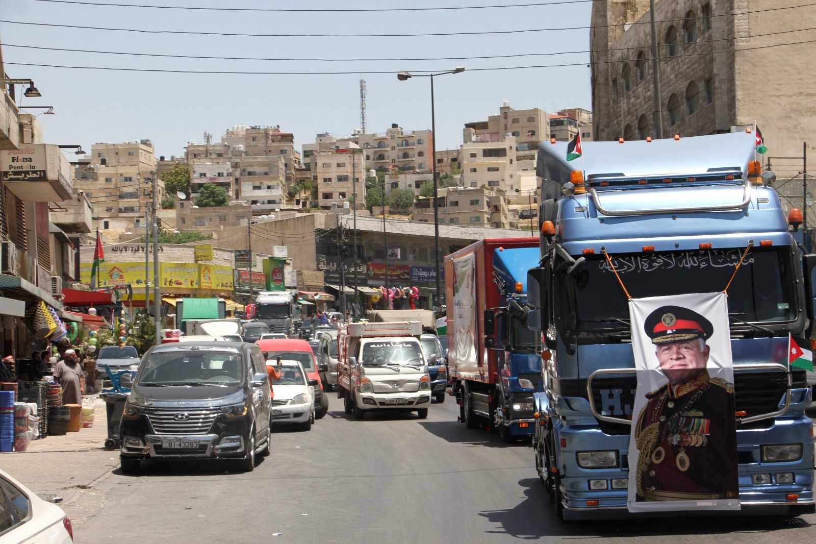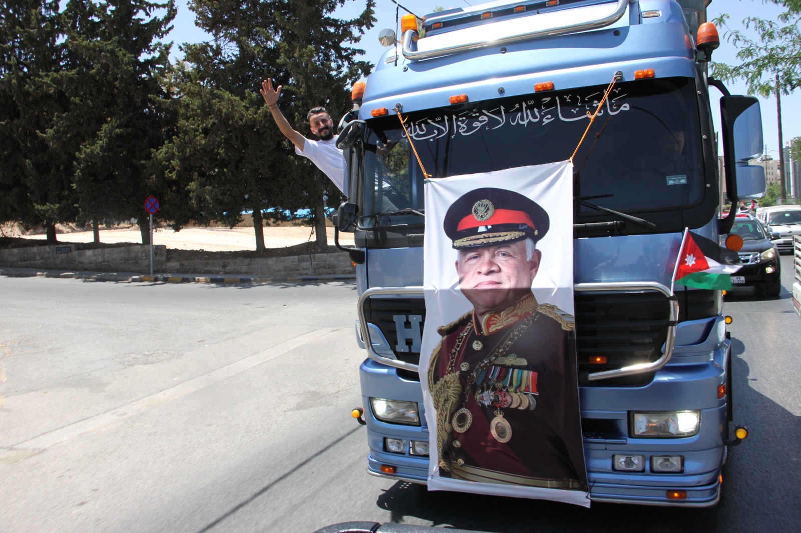 وجالت المسيرة في العاصمة عمان مؤكدة الوقوف خلف القيادة الهاشمية ومهنئة الشعب الأردني بذكرى الاستقلال.