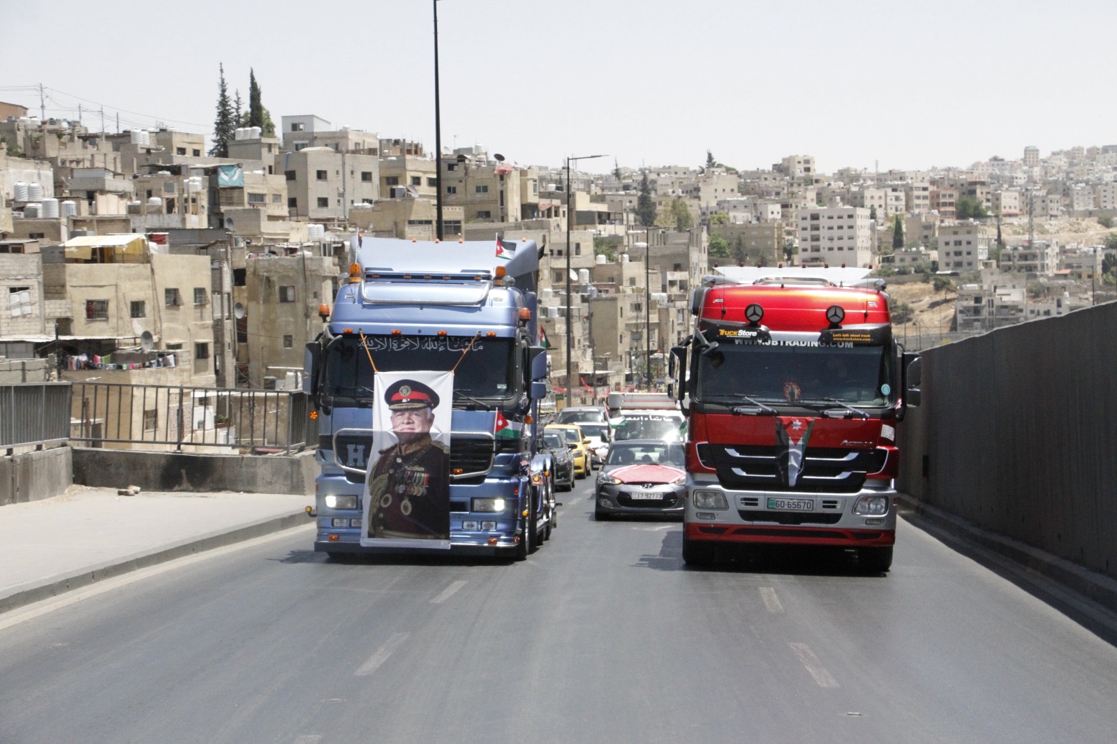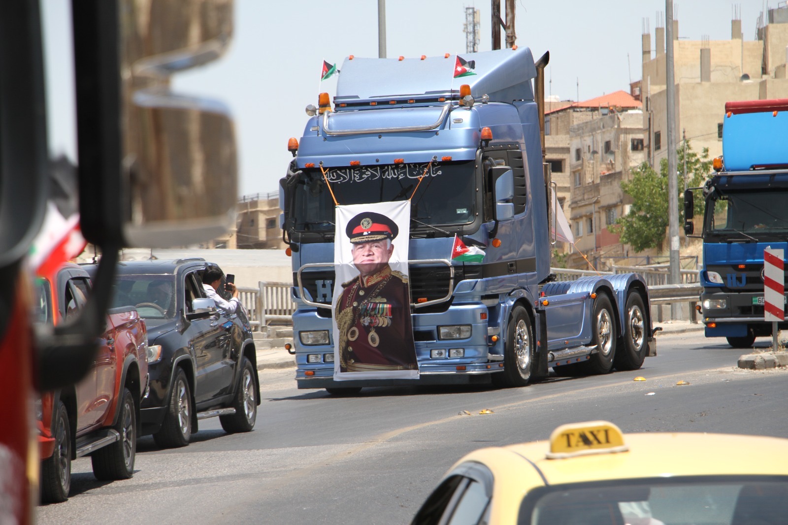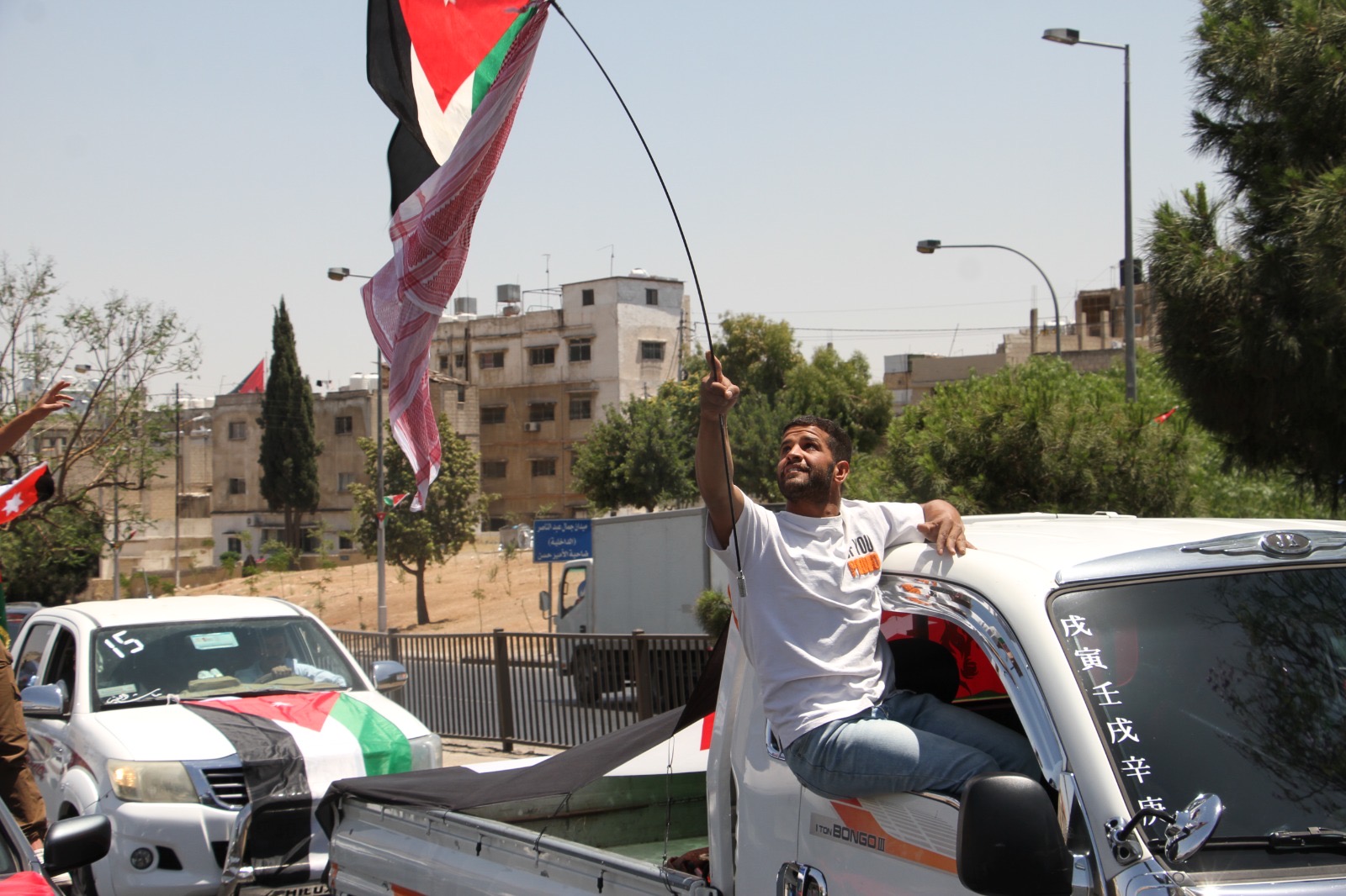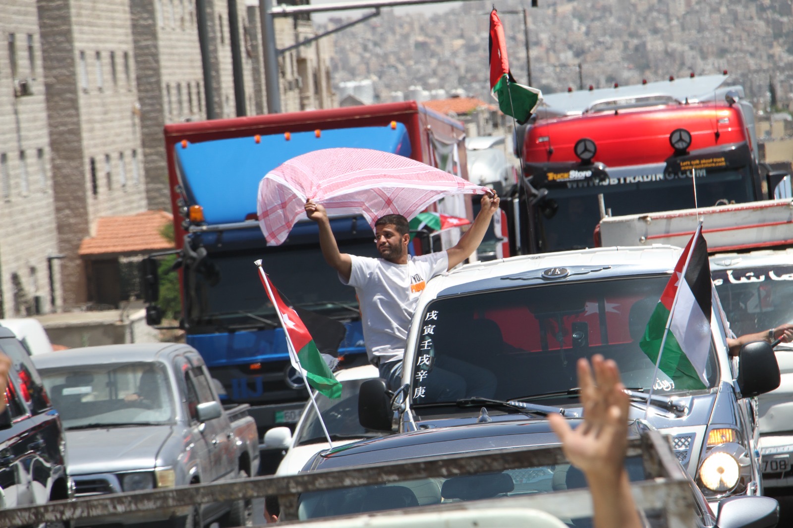 وجالت المسيرة في العاصمة عمان مؤكدة الوقوف خلف القيادة الهاشمية ومهنئة الشعب الأردني بذكرى الاستقلال.