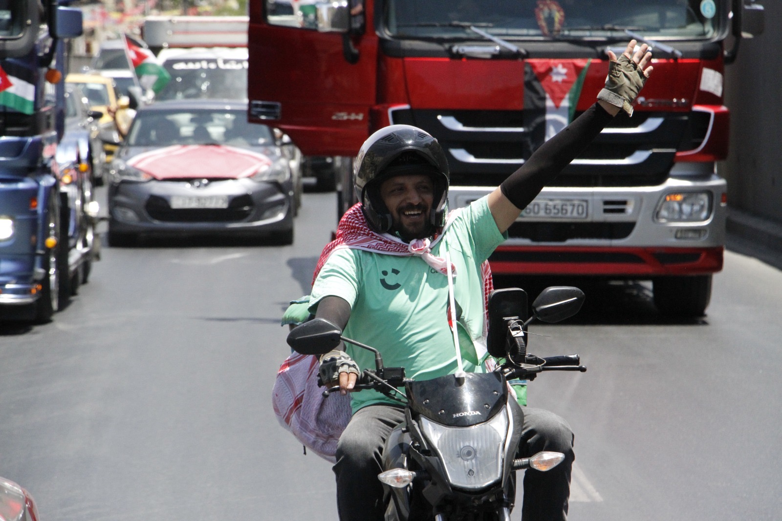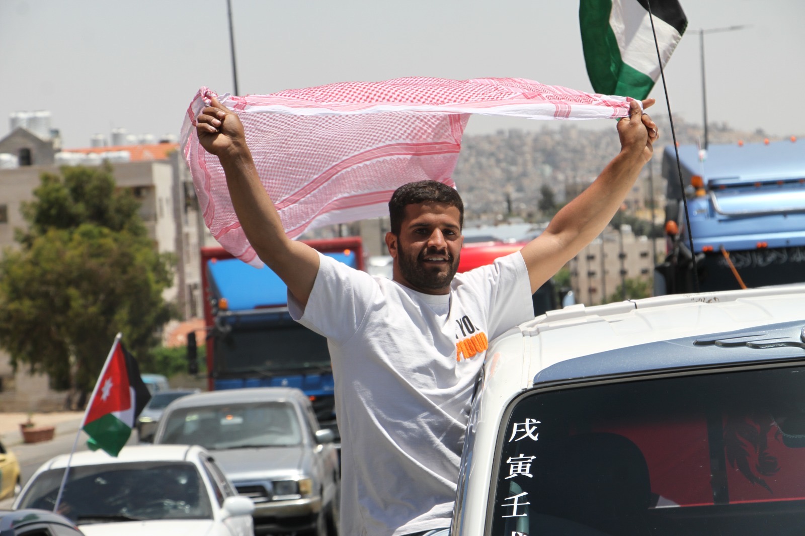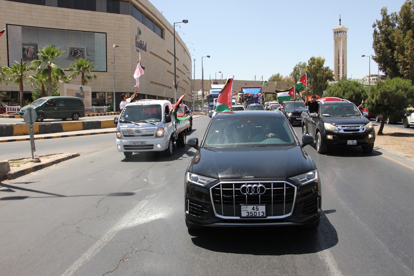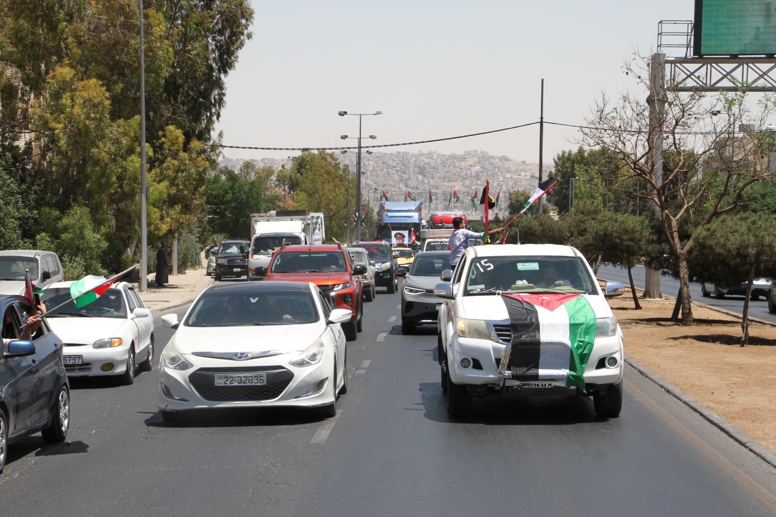 وجالت المسيرة في العاصمة عمان مؤكدة الوقوف خلف القيادة الهاشمية ومهنئة الشعب الأردني بذكرى الاستقلال.
