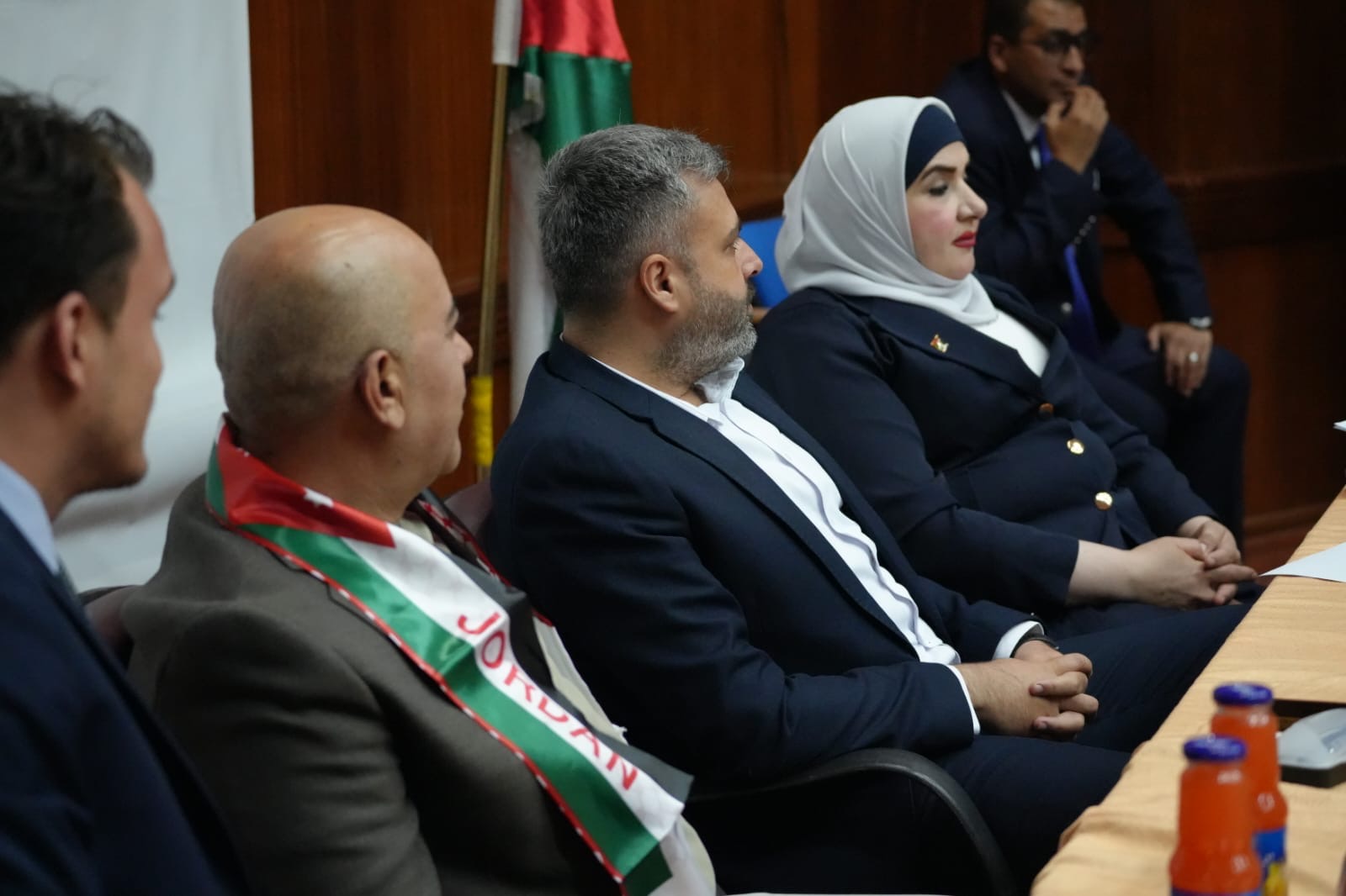 وفي ختام الحفل، ألقى المهندس يزن الهنداوي، ممثل شركة "يدا بيد"، كلمة حملت بُعدًا إنسانيًا ووطنيًا، قدّم فيها التهاني لجلالة الملك وسمو ولي العهد، وللشعب الأردني، مشيدًا بتأهل المنتخب الوطني، واختتم رسالته بكلمات مؤثرة موجّهة إلى والده الراقد على سرير الشفاء، داعيًا له بالصحة والعودة القريبة.