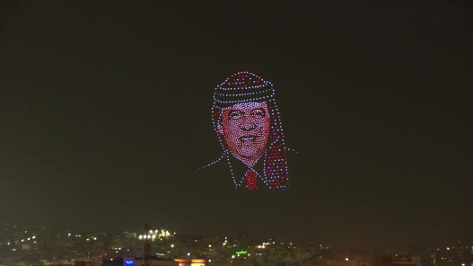 عمان جو- حلقت المئات من طائرات "الدرون"، مساء الثلاثاء، في سماء العاصمة عمّان، مؤدية عروضا ضوئية استعراضية، وذلك بمناسبة احتفالات المملكة بعيد الجلوس الملكي، ويوم الجيش، وتأهل المنتخب الوطني لكرة القدم إلى نهائيات كأس العالم.