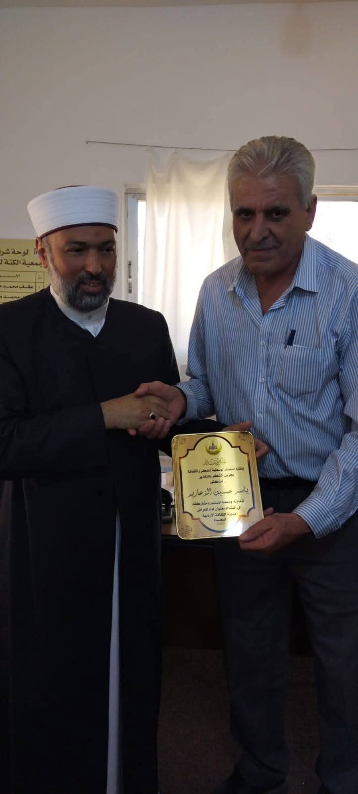 عمان جو- ضمن فعاليات لواء المعراض مدينة الثقافة الاردنيه لعام ٢٠٢٥ وبدعم من مديرية ثقافة جرش وتحت رعاية الدكتور عقله القادري مدير الثقافه مندوبا عنه رئيس قسم الهيئات الثقافيه والنشاطات مصعب القضاه اقام منتدى الوسطية للفكر والثقافة فرع جرش محاضرة بعنوان " الشافعي ترجمان الفقة الأسلامي" في جمعية الكتة للتنمية الأجتماعية يوم الخميس الموافق ٢٠٢٥/٧/١٠ قدمها فضيلة الشيخ مفتي لواء عين الباشا علي القادري