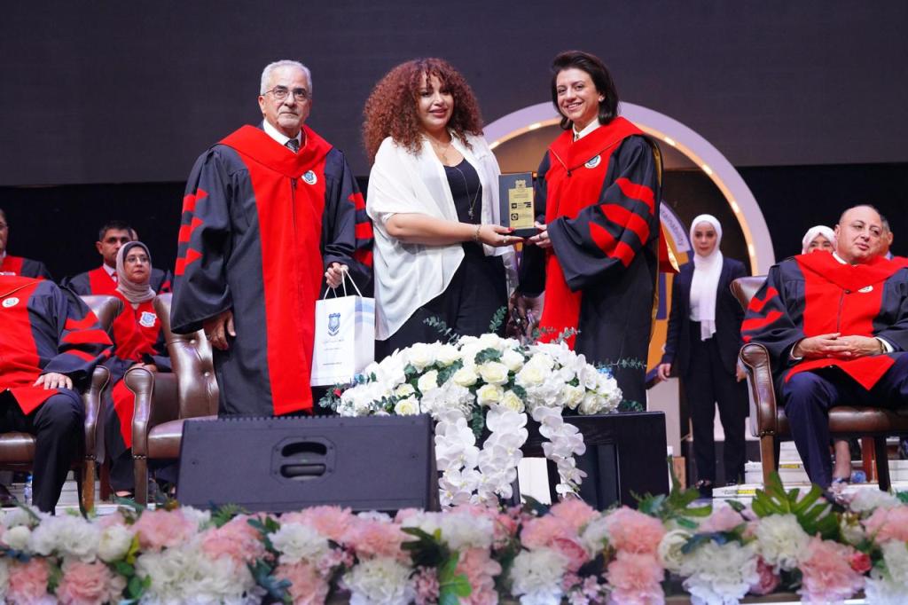 • وقامت راعية الحفل سمو الاميرة آية بنت فيصل والى جانبها رئيس الجامعة بتكريم خريجة الجامعة المخرجة المبدعة، مادونا حنا، من قسم التصميم السينمائي في كلية العمارة والتصميم ، التي واصلت مسيرتها الأكاديمية بالتحاقها بالمعهد العالي لفنون الطفل، وقُبلت ضمن أوائل الطلبة في برنامج ماجستير إخراج المسرح والسينما ، وتألقت بإخراج مسرحية "يافا والباب الأزرق"، التي فازت مع فرقتها بثلاث جوائز في مهرجان المسرح الدولي بالإسكندرية.
