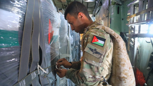 عمان جو- نفذت القوات المسلحة الأردنية، الجمعة، عملية إنزال جوي جديدة لإيصال مساعدات غذائية وإنسانية إلى قطاع غزة، من خلال 7 طائرات، اثنتان تابعتان لسلاح الجو الملكي الأردني، بالإضافة إلى طائرة لكل من جمهورية ألمانيا الاتحادية، ودولة الإمارات العربية المتحدة، ومملكة بلجيكا، ومملكة هولندا، وجمهورية فرنسا، محمّلة بنحو 67 طناً من المواد الإغاثية.