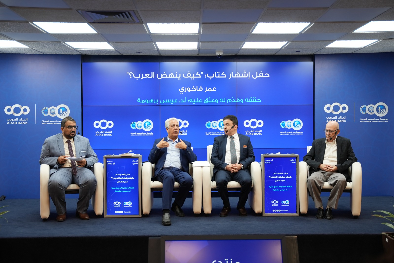 عمان جو - أُحتفل في منتدى مؤسسة عبد الحميد شومان الثقافي مساء أمس، بإشهار كتاب "كيف ينهض العرب؟" لعمر فاخوري، والذي حققه الدكتور عيسى عودة برهومة، بحضور نخبة من الأدباء والأكاديميين والمفكرين.