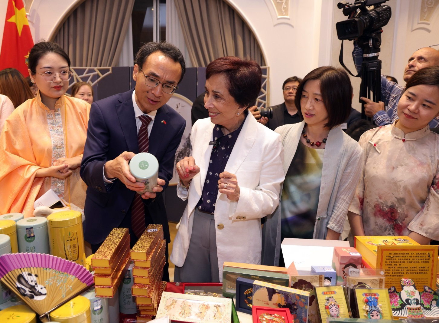 وجالت سموها، بحضور سفراء وممثلي الهيئات الدبلوماسية في أروقة البازار، واطلعت على المعروضات التي تضمنها وشملت منتوجات وصناعات يدوية ومأكولات جسدت التنوع الثقافي والحضاري العالمي.