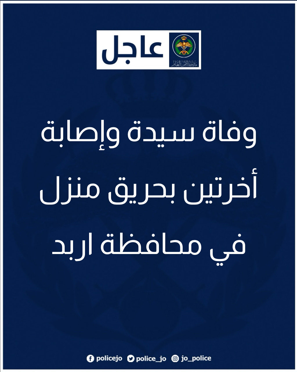 صرح الناطق الإعلامي باسم مديرية الامن العام بان بلاغا ورد لغرفة العمليات يفيد بوجود حريق منزل بالطابق الرابع لاحدى العمارات في شارع الحصن بمحافظة اربد