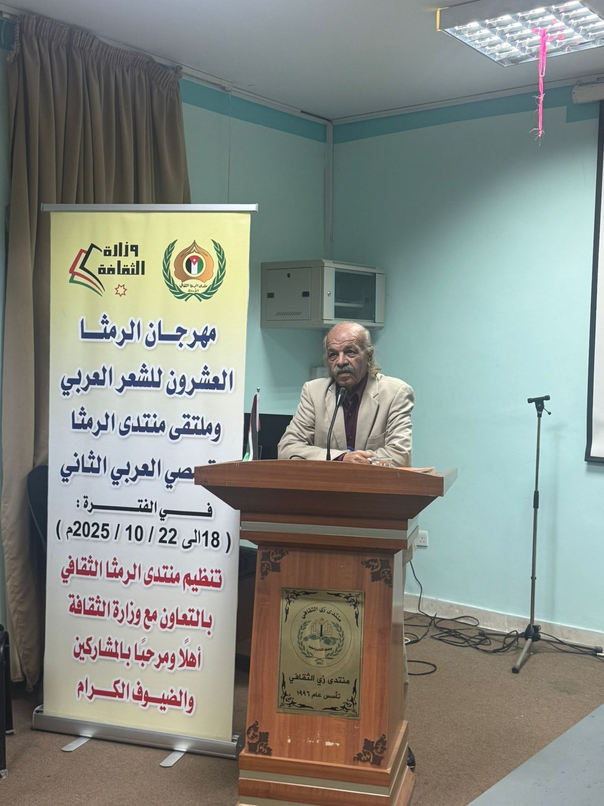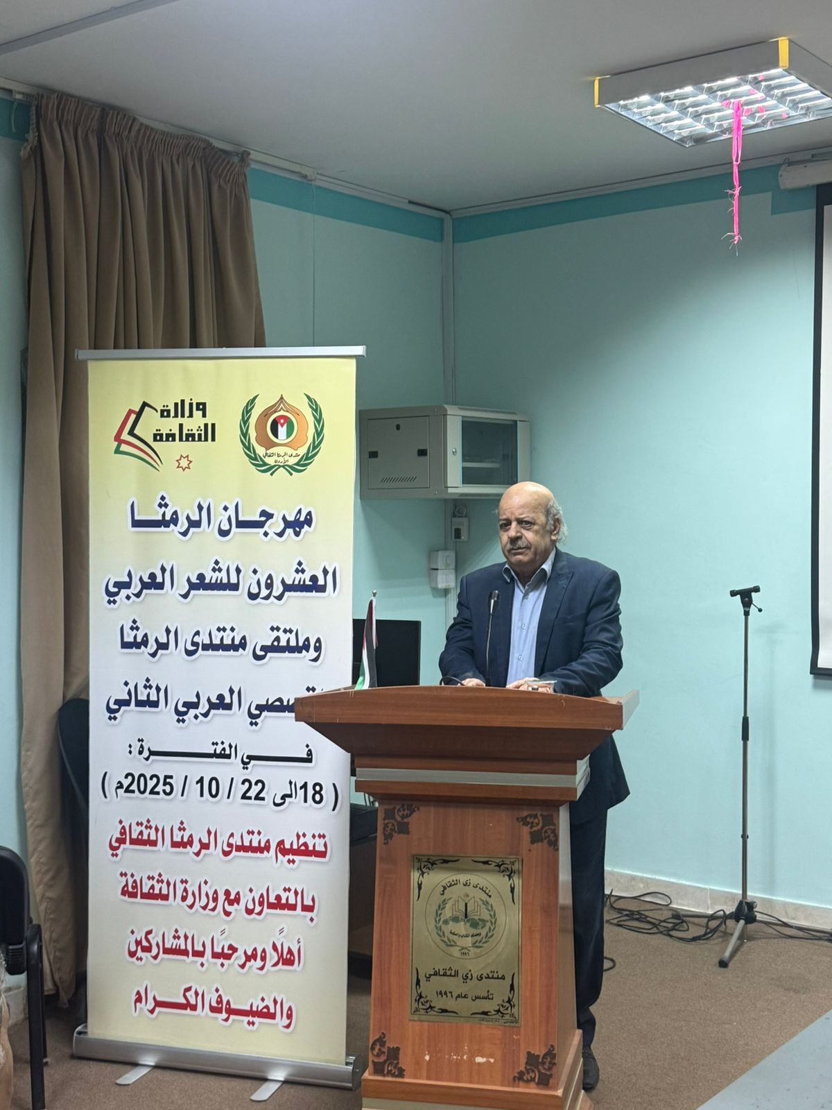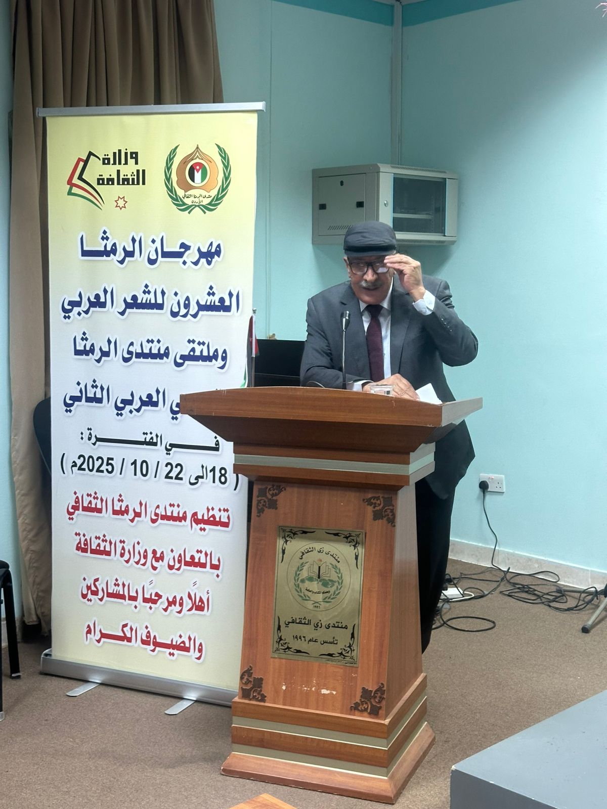 وقد انطلقت فعاليات مهرجان الرمثا العشرين للشعر العربي ، وملتقى منتدى الرمثا القصصي العربي الثاني مساء السبت الماضي في مدينة الرمثا / قاعة الملكة رانيا العبدالله ١٨ / ١٠ / ٢٠٢٥ م لمدة خمسة أيام ؛ بتنظيم من منتدى الرمثا الثقافي ، بالتعاون مع وزارة الثقافة ، وبرعاية معالي وزير الثقافة الأستاذ مصطفى الرواشدة .