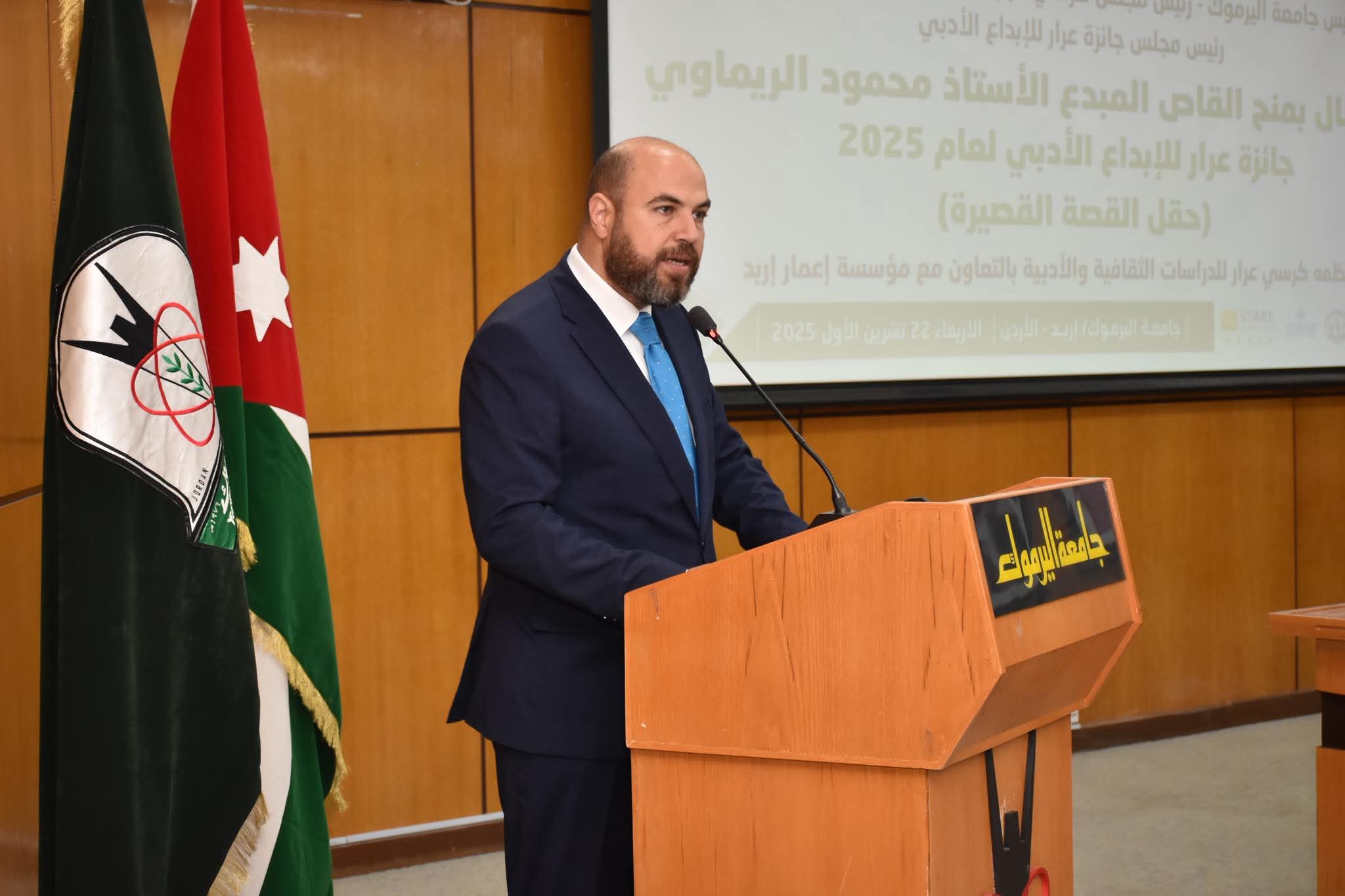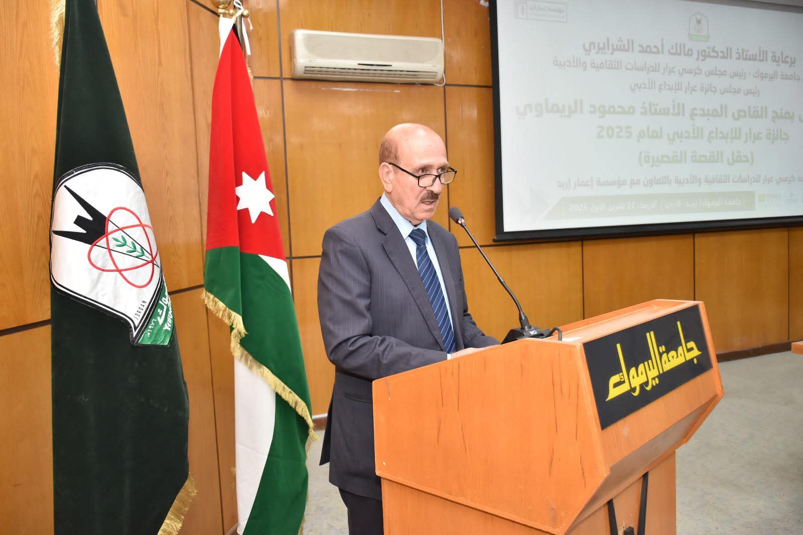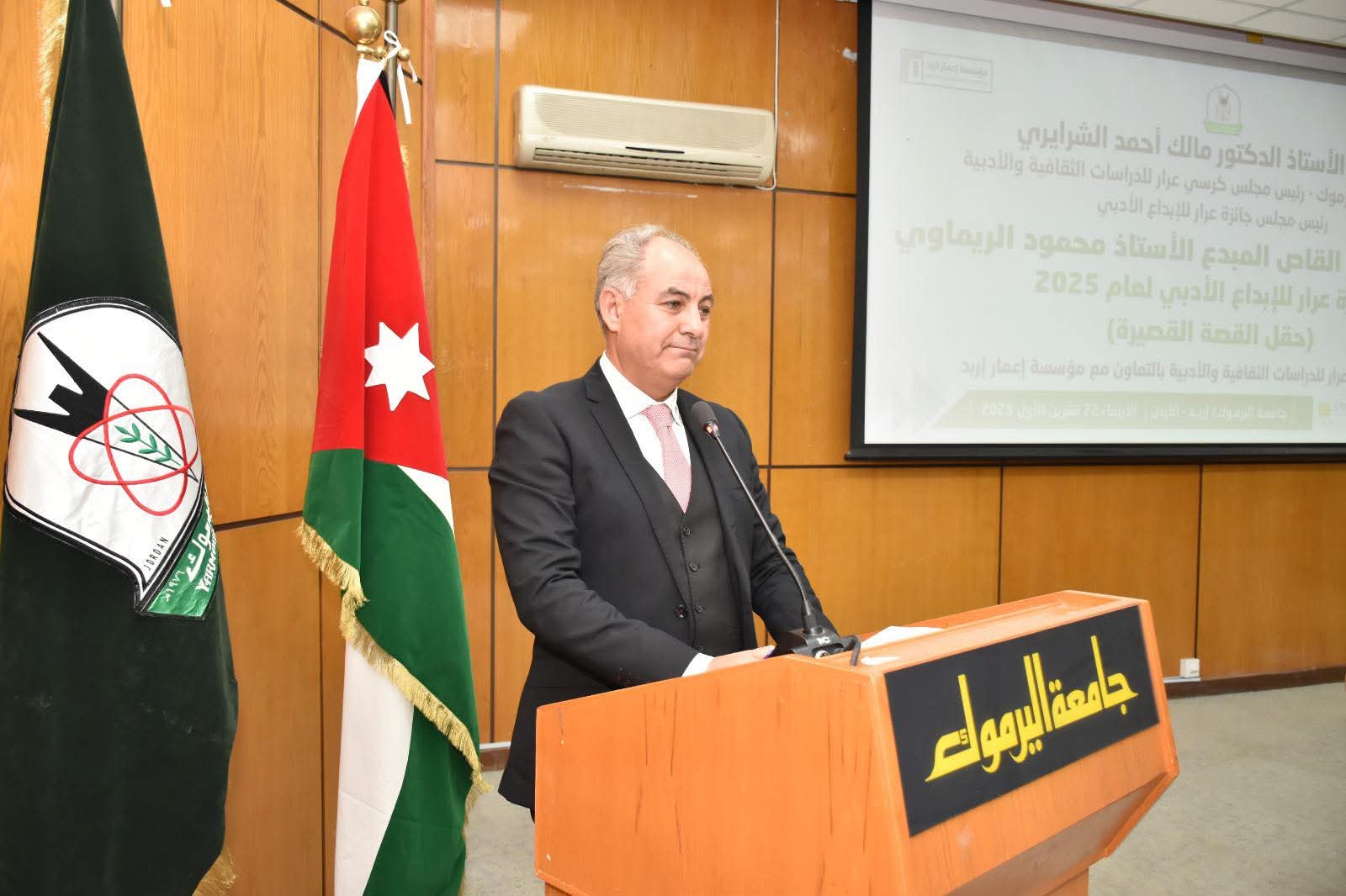 عمان جو-رعى رئيس جامعة اليرموك الأستاذ الدكتور مالك الشرايري، الاحتفال الذي نظمه كرسي عرار للدراسات الثقافية والأدبية بالتعاون مع مؤسسة إعمار إربد، بمناسبة منح القاص محمود الريماوي "جائزة عرار للإبداع الأدبي لعام 2025" عن حقل القصة القصيرة.
