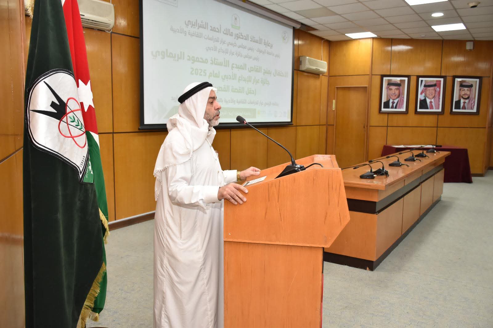 وقال الشرايري إننا نجتمع اليوم للإعلان عن الفائز بجائزة عرار للإبداع الأدبي في حضرة نخبة من الأساتذة والمثقفين والنقاد والمبدعين، مبينا أنه تم هذا العام اختيار أن تكون الجائزة في حقل القصة القصيرة سيما وأننا نعيش في زمن السرد الذي صار أقدر الفنون الكتابية وغير الكتابية على مقاربة الواقع الاجتماعي، وفهم مكوناته وأسراره، واستجلاء خبايا النفس الإنسانية على اختلاف المجتمع، واختلاف الشعوب والثقافات.
