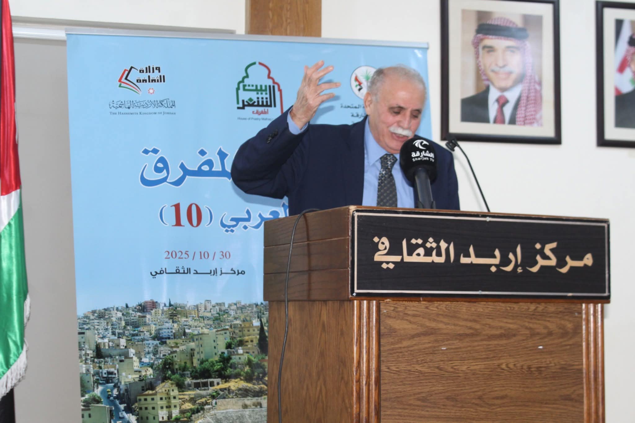 بحضور نخبه من الشعراء والمهتمين بالشأن الثقافي أختتمت مساء أمس في مركز إربد الثقافي فعاليات مهرجان بيت الشعر العربي/المفرق العاشر والذي ينظمه بيت الشعر الأردني/ المفر ق بالتعاون مع بيت الشعر في الشارقة . أمسية الختام التي شارك بها كل من الشعراء " حربي المصري، طي حتاملة ، خالد مياس ،إبراهيم الحسبان، حمزة بني ياسين رند الرفاعي ، وقدمها الشاعر الدكتور سلطان الزغول مدير ثقافة اربد الذي اكد في بداية الامسية على اقامة مثل هذه المهرجانات التي تعزز مفهوم هوية الشعر العربي وجمالياته . وحول دور بيت الشعر العربي ودوره الريادي أضاف الزغول " يرجع الفضل في تأسيس بيوت الشعر العربي في الحفاظ على الهوية العربية الإسلامية الى توجيهات الشيخ الدكتور سلطان القاسمي أمير الشارقة . وقرأ الشعراء المشاركين في حفل الاختتام قصائد عاينت الحياة وأحوال الأمة. وفي نهاية الأمسية كرم مدير بيت الشعر في المفرق فيصل السرحان المشاركين بشهادات تقديرية . وقد انطلقت فعاليات مهرجان المفرق العاشر مساء الاثنين ولمدة اربعة ايام تحت رعاية مندوب وزير الثّقافة مدير عام المكتبة الوطنية الدكتور فراس الضرابعة . بمشاركة مجموعة من الشعراء الأردنيين والعرب .