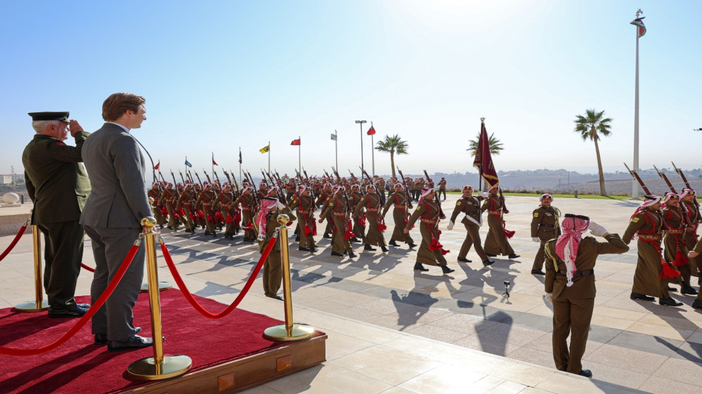 وجرت للضيف مراسم استقبال عسكرية، حيث استعرض حرس الشرف الذي اصطف لتحيته.