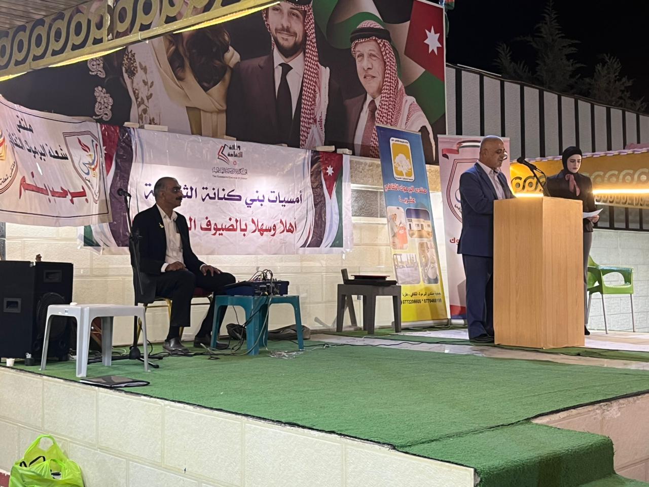 وفي بداية الأمسية وبعد السلام الملكي تلا الشاب ريان الروسان آيات من القرآن الكريم ثم رحب السيد كايد شتيات رئيس منتدى اليرموك بالحضور وراعي الأمسية، وتحدث الدكتور ابراهيم الطيار حول ملتقى إربد للشعر الشعبي وأمسيات بني كنانة الثقافية والطموحات المستقبلية للهيئات المنظمة، وأكد على استمرار هذه الامسيات الثقافية، وثمن راعي الحفل في كلمته الجهود المبذولة في الجانب الثقافي من قبل الهيئات الثقافية المنظمة موضحاً أهمية العمل الثقافي كمشروع تنموي فكري وبشري.