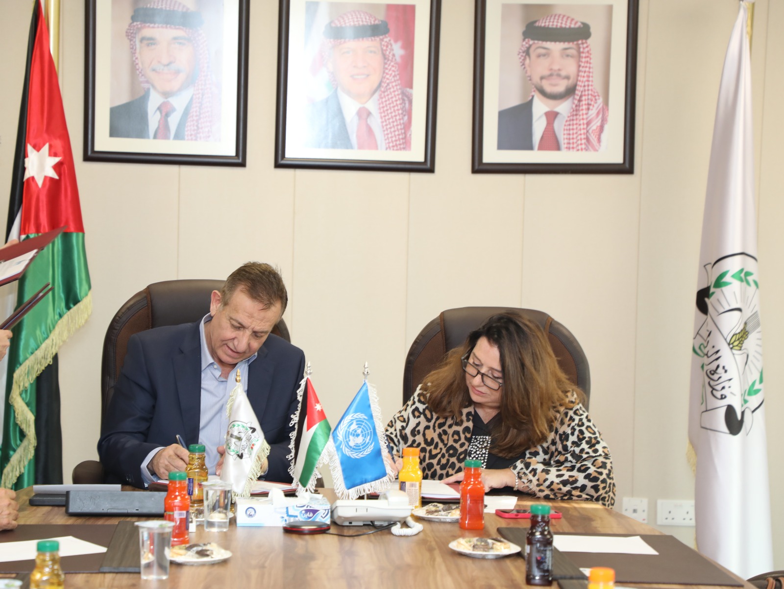 عمان جو - وقّعت وزارة الزراعة، وبرنامج الأمم المتحدة للمستوطنات البشرية، اليوم الأربعاء، اتفاقية مشروع تعزيز النظام البيئي من خلال حصاد المياه المستدام في الحسينية بمحافظة معان.