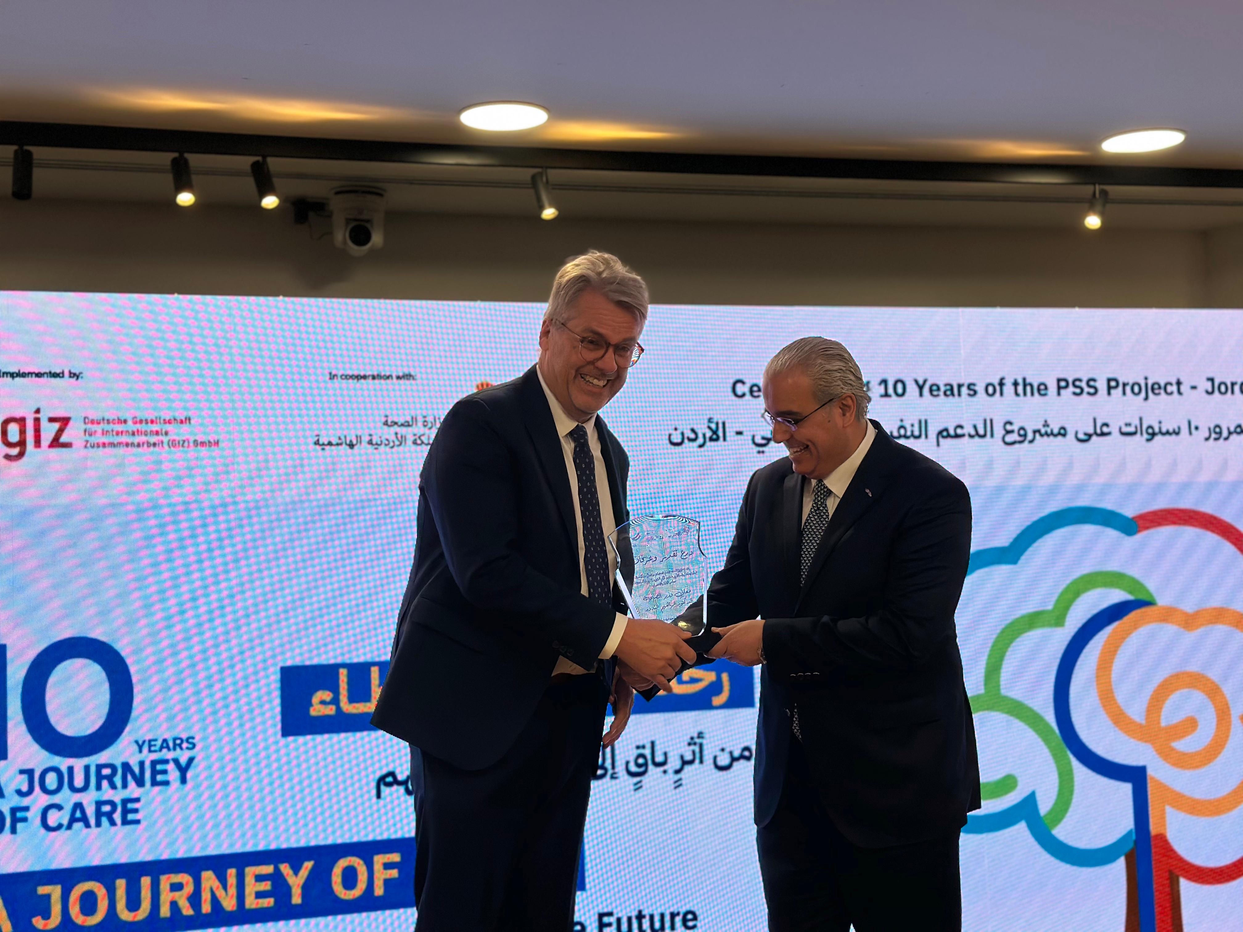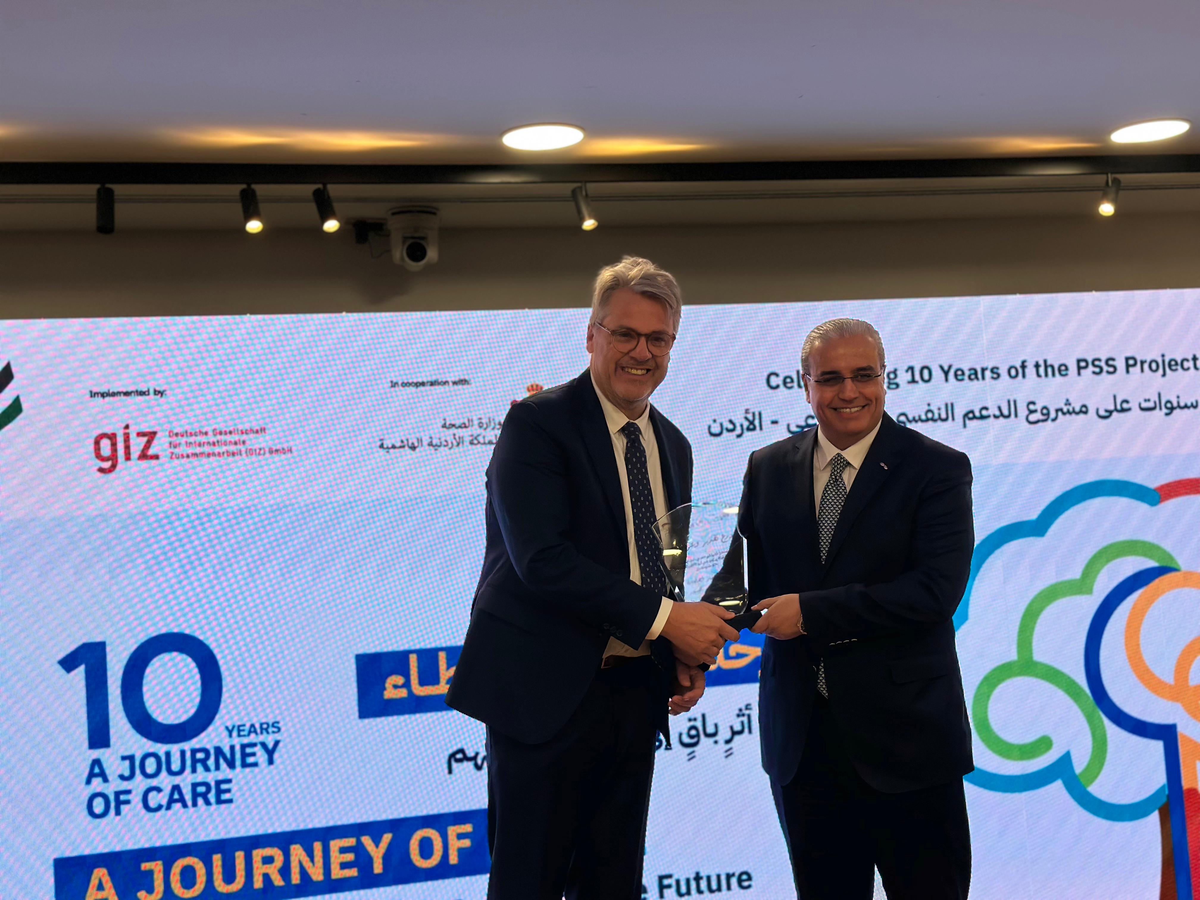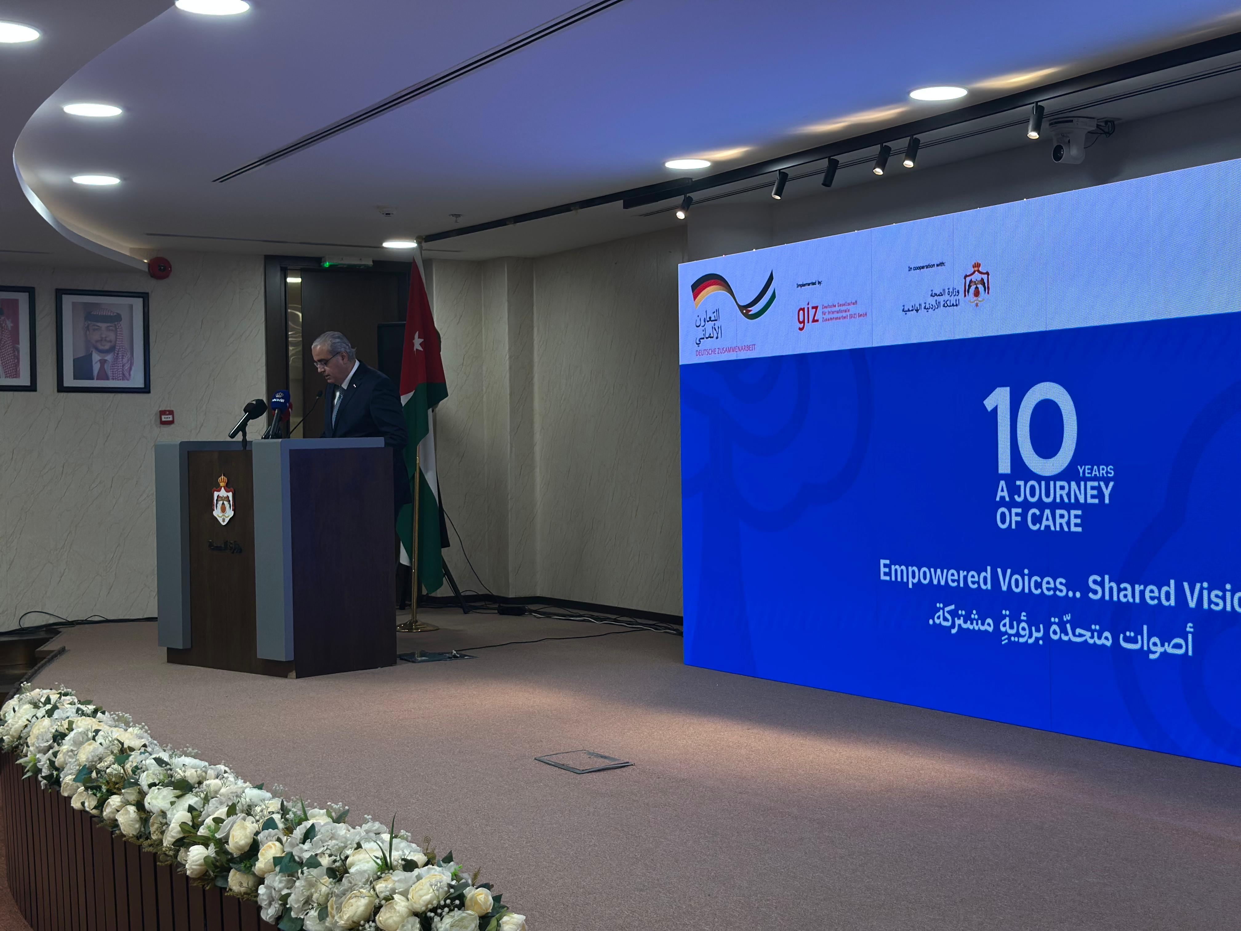 تحت رعاية معالي وزير الصحة الدكتور إبراهيم البدور، وبالشراكة مع مشروع الدعم النفسي الاجتماعي المنفّذ من قبل التعاون الدولي الألماني (GIZ) والمموّل من الوزارة الاتحادية الألمانية للتعاون الاقتصادي والتنمية (BMZ)، نُظّمت فعالية احتفالية بعنوان "عشر سنوات من الرعاية والشراكة"، احتفاءً بختام المشروع الذي نُفّذ بالتعاون الوثيق مع وزارة الصحة.