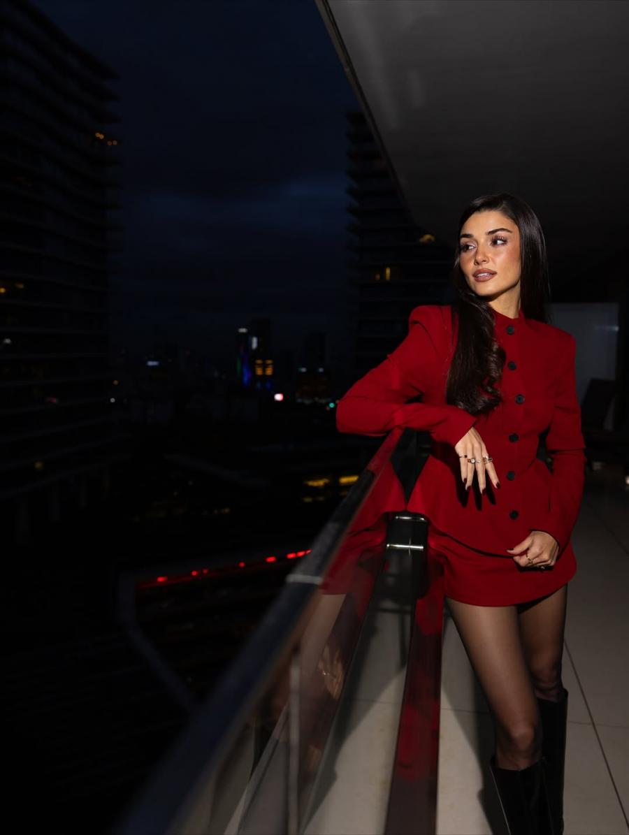 عمان جو - ظهرت النجمة التركية #هاندا_آرتشيل بطقم رسمي جذاب من بليزر وتنورة، اختارتهما بلون أحمر ناري وأزرار سوداء بارزة، من العلامة التركية Nocturne، وذلك في عشاء خاص للبراند التي تعد سفيرة له. ونسقت هاندا مع إطلالتها حذاءً جلديًا أسود بساق عالية واعتمدت تسريحة شعر منسدلة ومكياجًا ناعمًا.. ما رأيك بإطلالتها؟