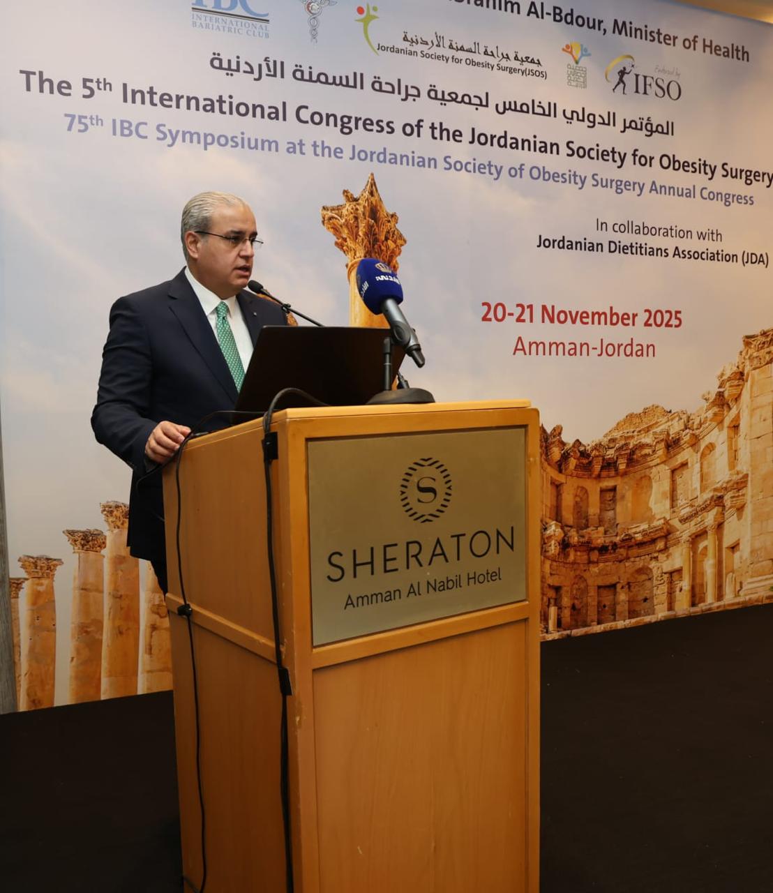 وأضاف لدى افتتاحه اليوم الخميس مؤتمر جراحة السمنة الدولي الخامس أن جراحة السمنة تعتبر تخصصاً متعدد الجوانب يتداخل مع اختصاصات أخرى، ما يعكس روح العمل الجماعي الذي يميز القطاع الصحي الأردني. وأشار إلى أن الوزارة تولي أهمية كبيرة للتطور العلمي والعمليات النوعية في مختلف التخصصات، وهو ما يسهم في تعزيز تقدّم الأردن وتميّزه في مجالي التعليم والصحة.