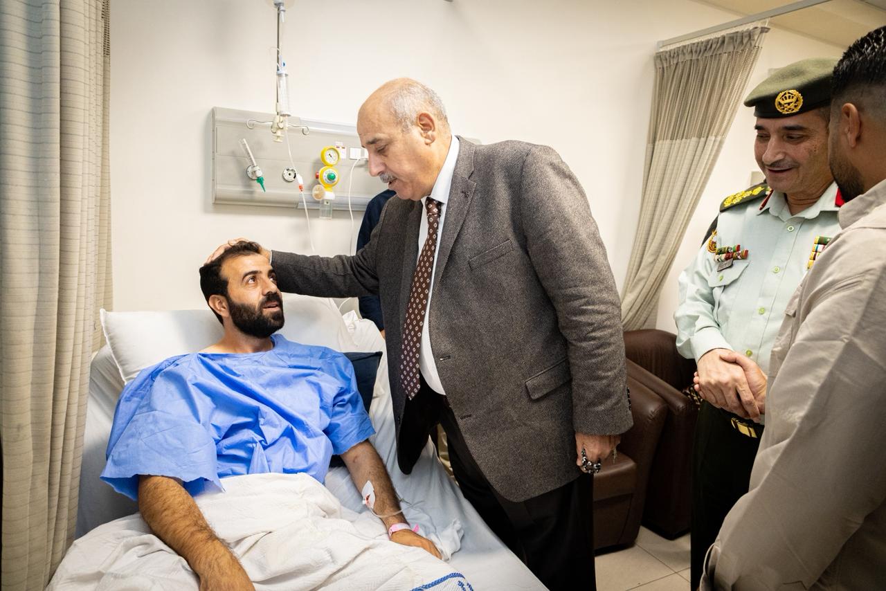 عمان جو - زار رئيس مجلس النواب مازن القاضي، المصابين في المداهمة الأمنية التي جرت يوم أمس في لواء الرمثا.