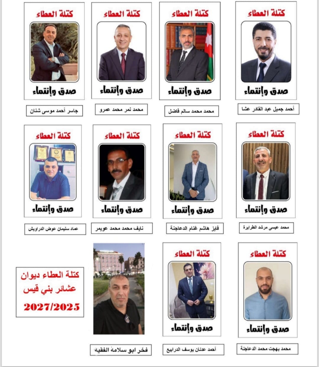 عقدت الهيئة الإدارية الجديدة والمنتخبة اجتماعها الأول مساء الجمعة الموافق ٢٠٢٥١١٢٨ في مقر ديوان عشائر بني قيس إيذانا ببدء مرحلة جديدة من العمل المشترك وخدمة الوطن والمليك والعشيرة