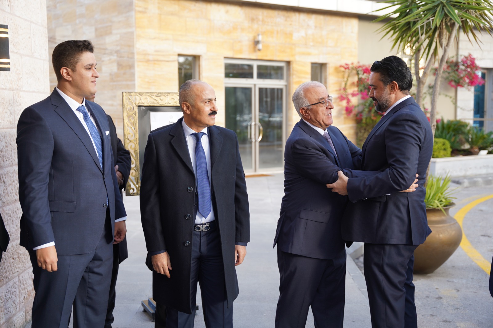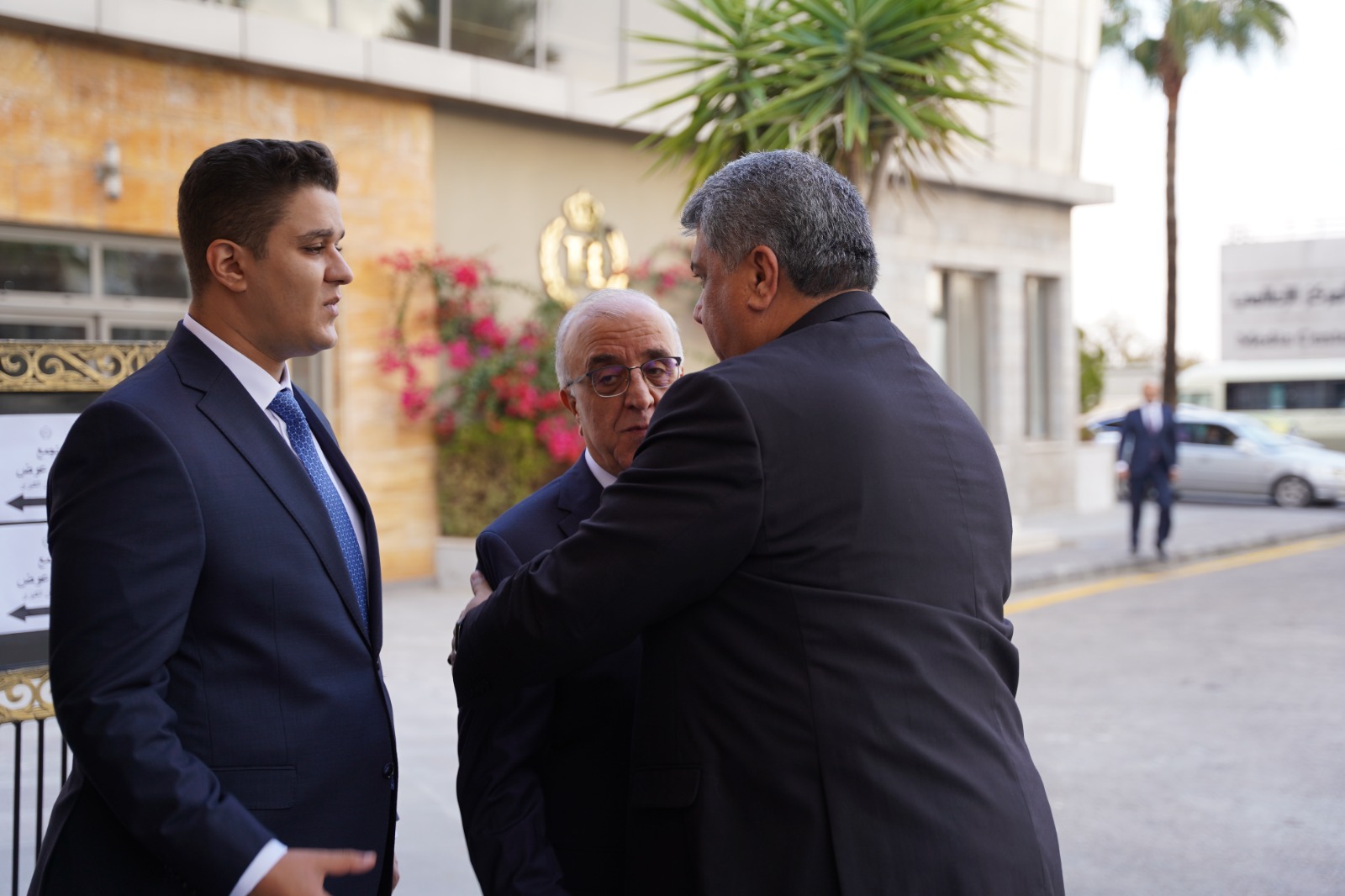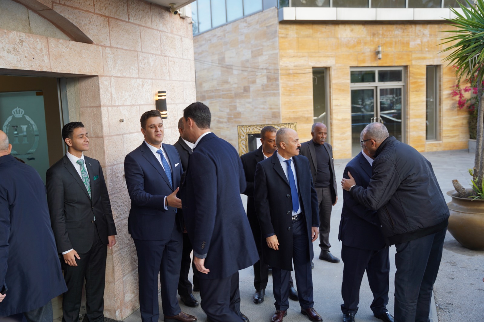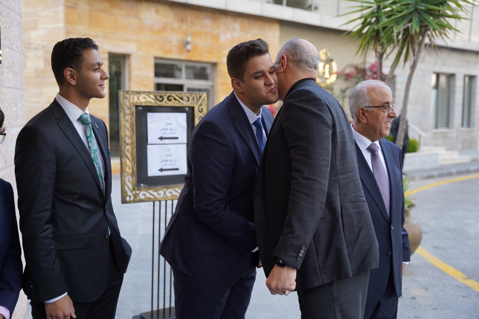 عمان جو - توجهت جاهة كريمة من آل أبو عوض الى آل القاسم برئاسة الوزير الأسبق صخر دودين لطلب يد كريمة السيد عمر القاسم الآنسة الدكتورة (روتانا) الى نجل الدكتور محسن أبو عوض الشاب الخلوق فايز .