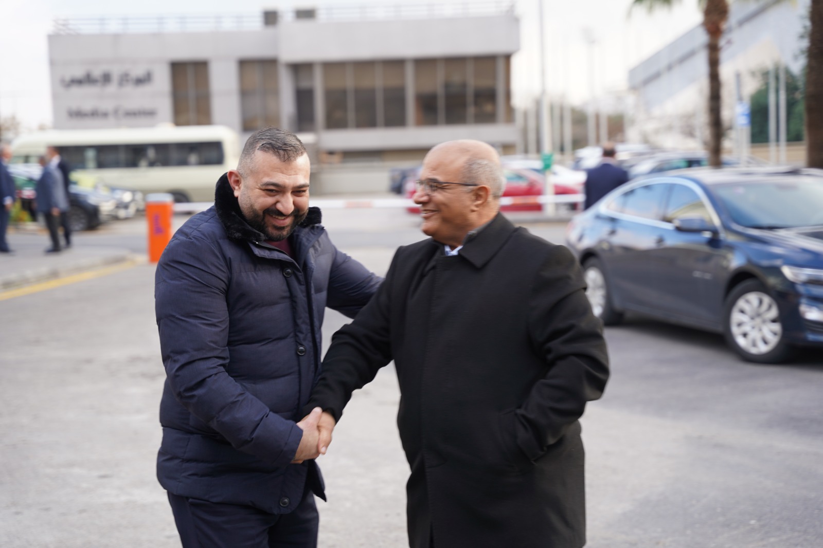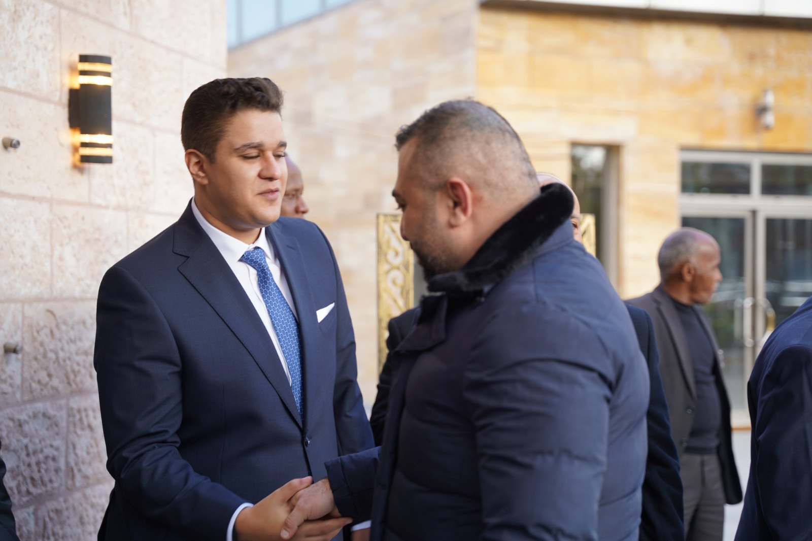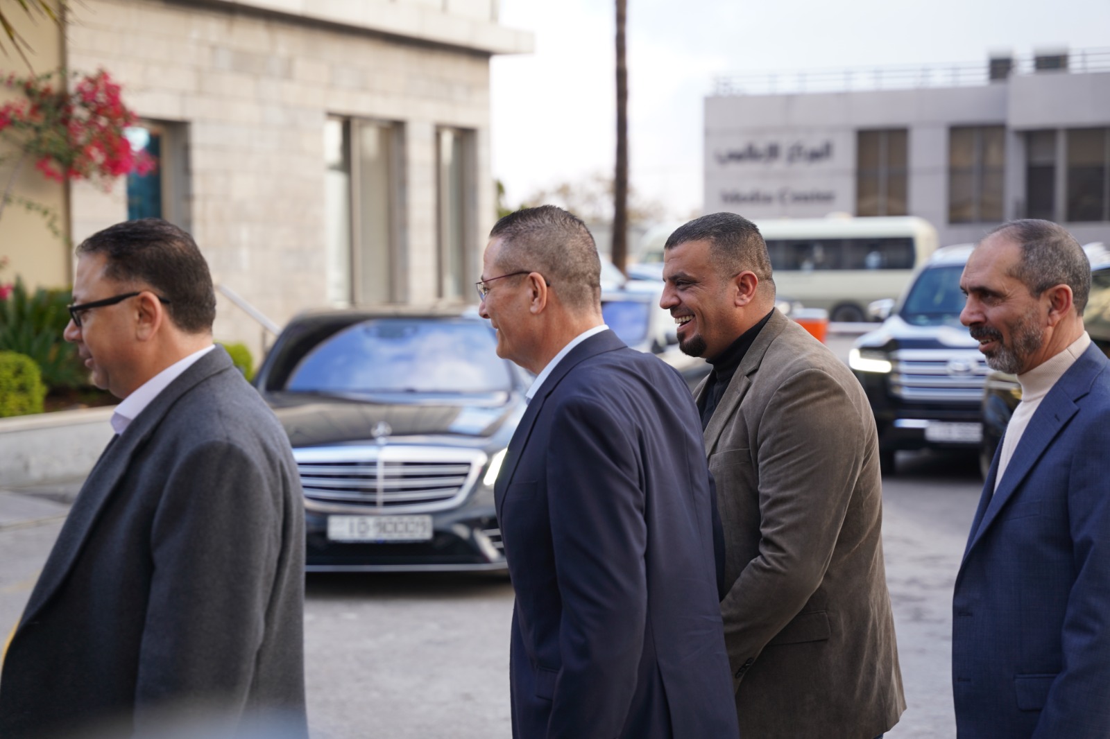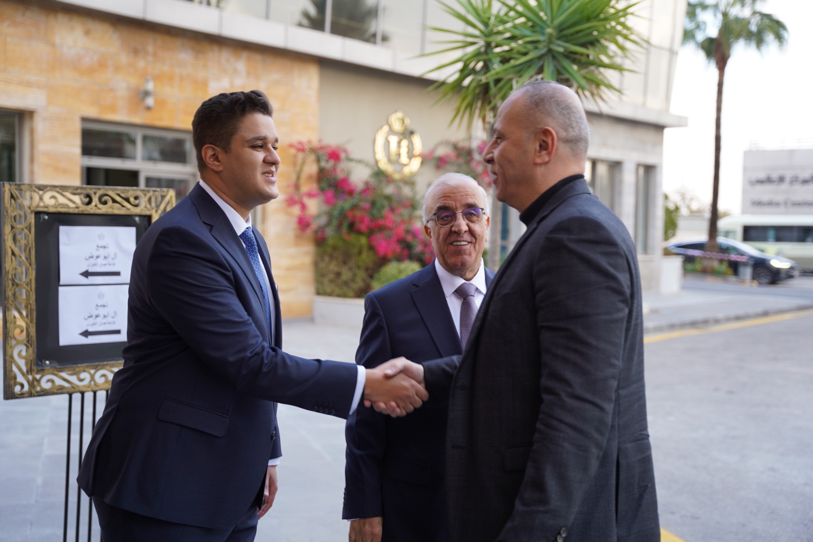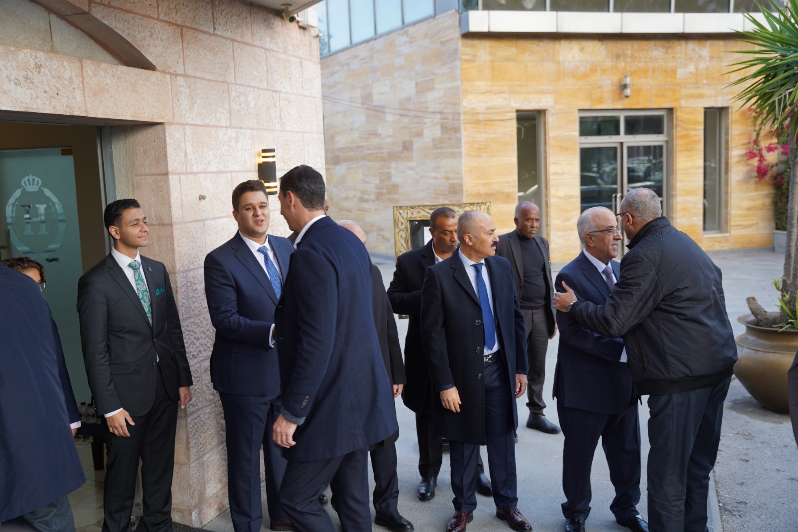 عمان جو - توجهت جاهة كريمة من آل أبو عوض الى آل القاسم برئاسة الوزير الأسبق صخر دودين لطلب يد كريمة السيد عمر القاسم الآنسة الدكتورة (روتانا) الى نجل الدكتور محسن أبو عوض الشاب الخلوق فايز .
