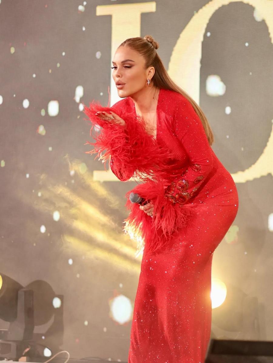عمان جو - بفستان لامع يزينه الريش.. حضرت الفنانة اللبنانية نيكول سابا حفل مجلة "Engima" بفستان أحمر لامع بستايل الماكسي، يزينه الريش من الأكمام.