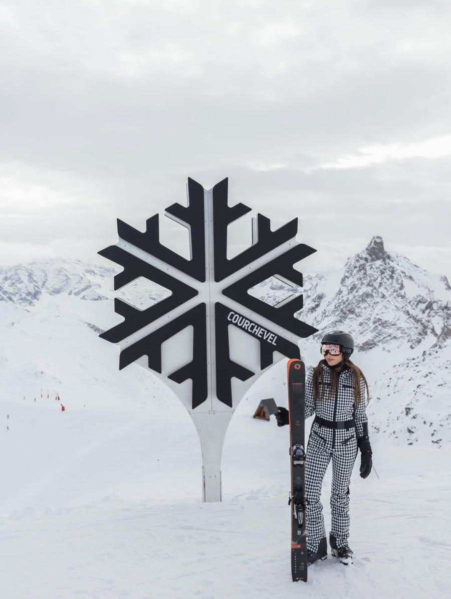عمان جو - وسط أجواء التزلج، اختارت #نهى_نبيل بدلة شتوية بالأسود والأبيض، تميزت بنقشة الشطرنج التي منحت مظهرها طابعاً حيوياً.