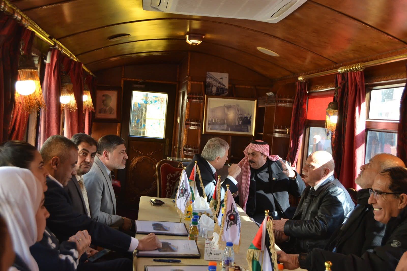 كما رافق رئيس وأعضاء اللجنة وزير النقل ومدير عام مؤسسة الخط الحديدي الحجازي زاهي خليل وأعضاء مجلس إدارة المؤسسة في جولة بالقطار على الخط الحديدي الحجازي داخل عمّان، للاطلاع على طبيعة عمل المؤسسة ودورها التاريخي، وأبرز المشاريع والبرامج التي تنفذها للحفاظ على هذا الإرث الوطني.