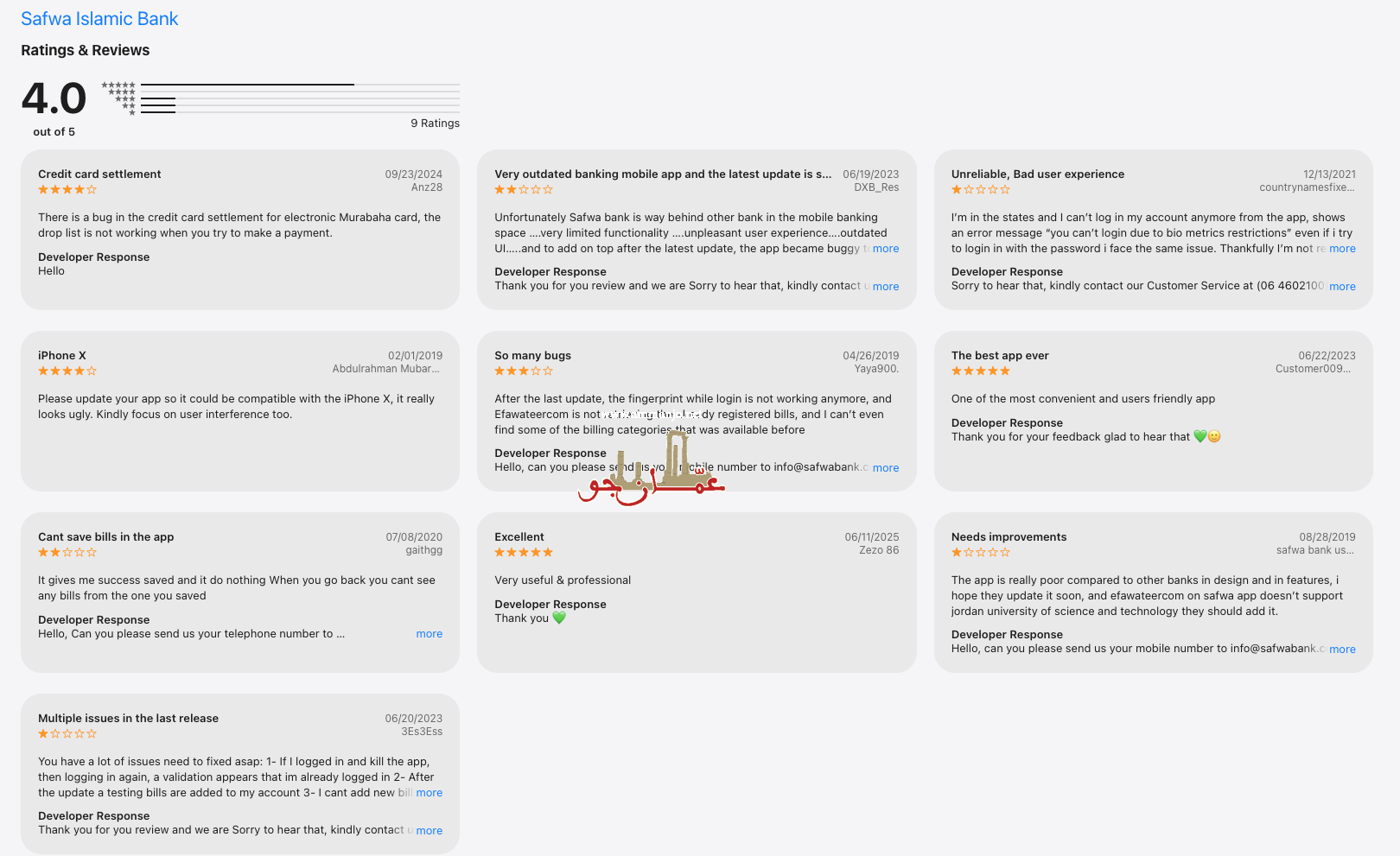ويطرح متابعون تساؤلًا مشروعًا حول آلية تعامل بنك صفوة الإسلامي مع هذه التعليقات وما إذا كانت تتم متابعتها بشكل مباشر من قبل الإدارة التنفيذية أو من خلال فرق فنية متخصصة تقوم برفع تقارير دورية حول أبرز الملاحظات والعمل على معالجتها ضمن خطط تطوير الخدمات الرقمية.