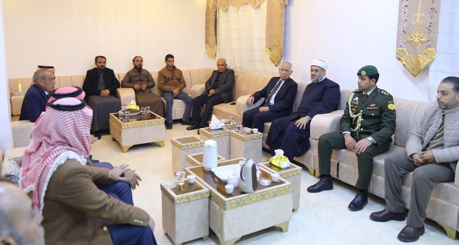 مأدبا- عمان - 1 شباط 2026- مندوبا عن جلالة الملك عبدالله الثاني وسمو الأمير الحسين بن عبدالله الثاني، ولي العهد، قدّم رئيس الديوان الملكي الهاشمي يوسف حسن العيسوي، اليوم الأحد، واجب العزاء إلى عشائر الربطة والدبوبي والحوراني والجعافرة، ناقلا إليهم تعازي ومواساة جلالة الملك وسمو ولي العهد.