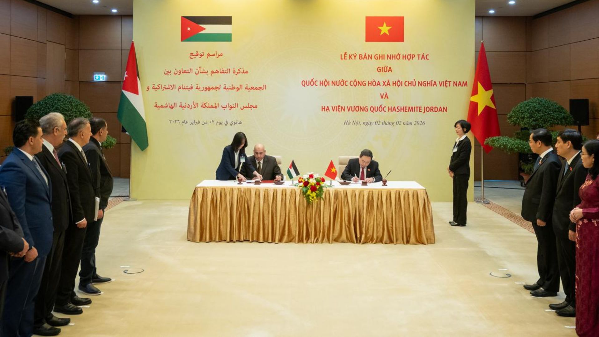 وعلى هامش جلسة المباحثات، وقع الجانبان مذكرة تفاهم بشأن التعاون البرلماني المشترك، والتي تهدف لتعزيز علاقات التعاون الثنائي القائمة بين الأردن وفيتنام والحرص على تطويرها في مختلف المجالات.