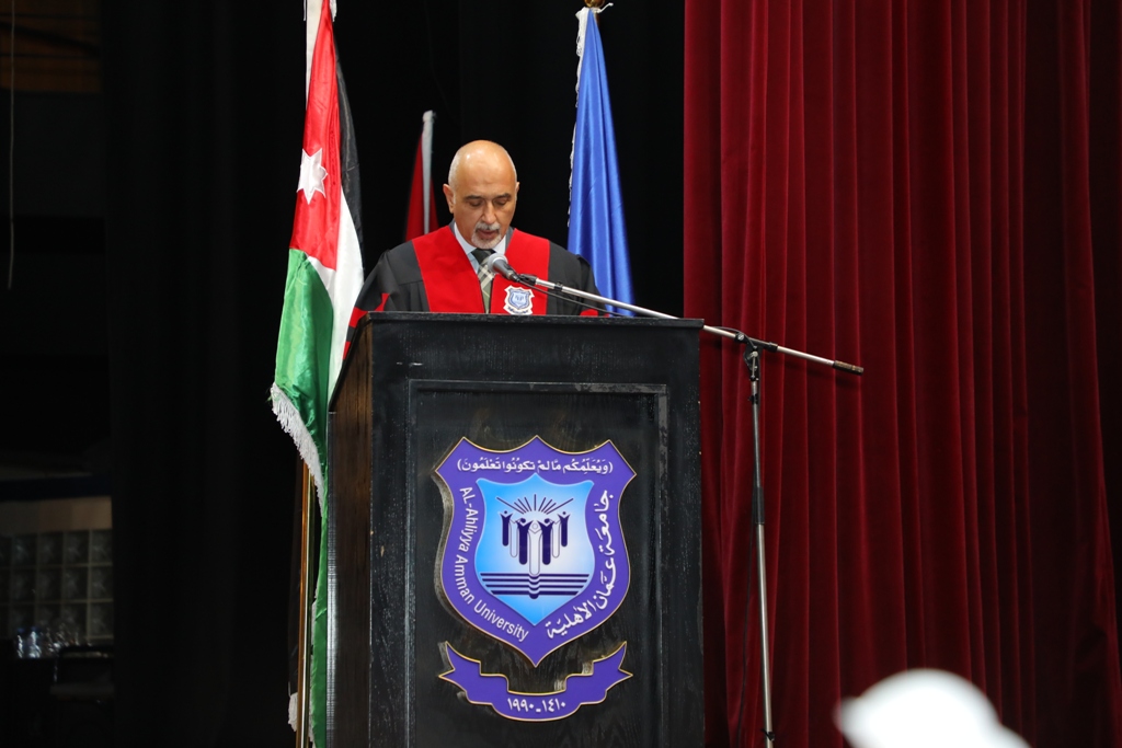 واختتم كلمته بالقول : إننا في جامعة عمّان الأهلية، ونحن نحتفي بتخريج فوجٍ جديد من أبنائنا وبناتنا، نؤكد فخرنا واعتزازنا بقيادتنا الهاشمية الحكيمة، وبالمواقف الوطنية المشرفة لصاحب الجلالة الملك عبد الله الثاني ابن الحسين، حفظه الله، والتي تجسّد إرادةً وطنيةً راسخة تعبّر عن وحدة الأردنيين على اختلاف أصولهم ومنابتهم.وفقنا الله جميعاً لخدمةِ جامعتِنا وخدمةِ أردننا الغالي في ظل حضرة صاحب الجلالة الهاشمية الملك عبد الله الثاني ابن الحسين وولي عهده الأمين.