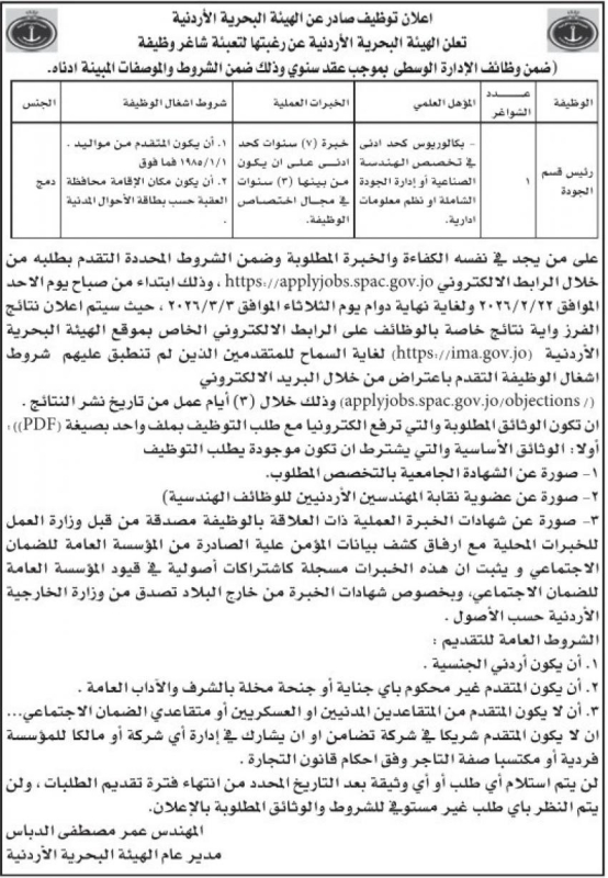 عمان جو - أعلنت هيئة تنظيم قطاع الاتصالات عن حاجتها لتعبئة وظائف شاغرة ضمن شروط محددة.