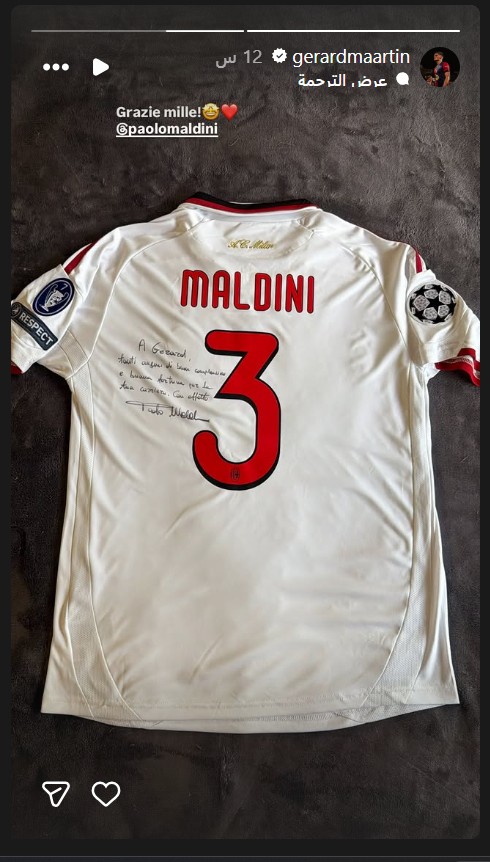 وجاء في الرسالة المكتوبة على القميص: "إلى جيرارد عيد ميلاد سعيد، وحظًا موفقًا في مسيرتك، مع خالص التحية، باولو مالديني".