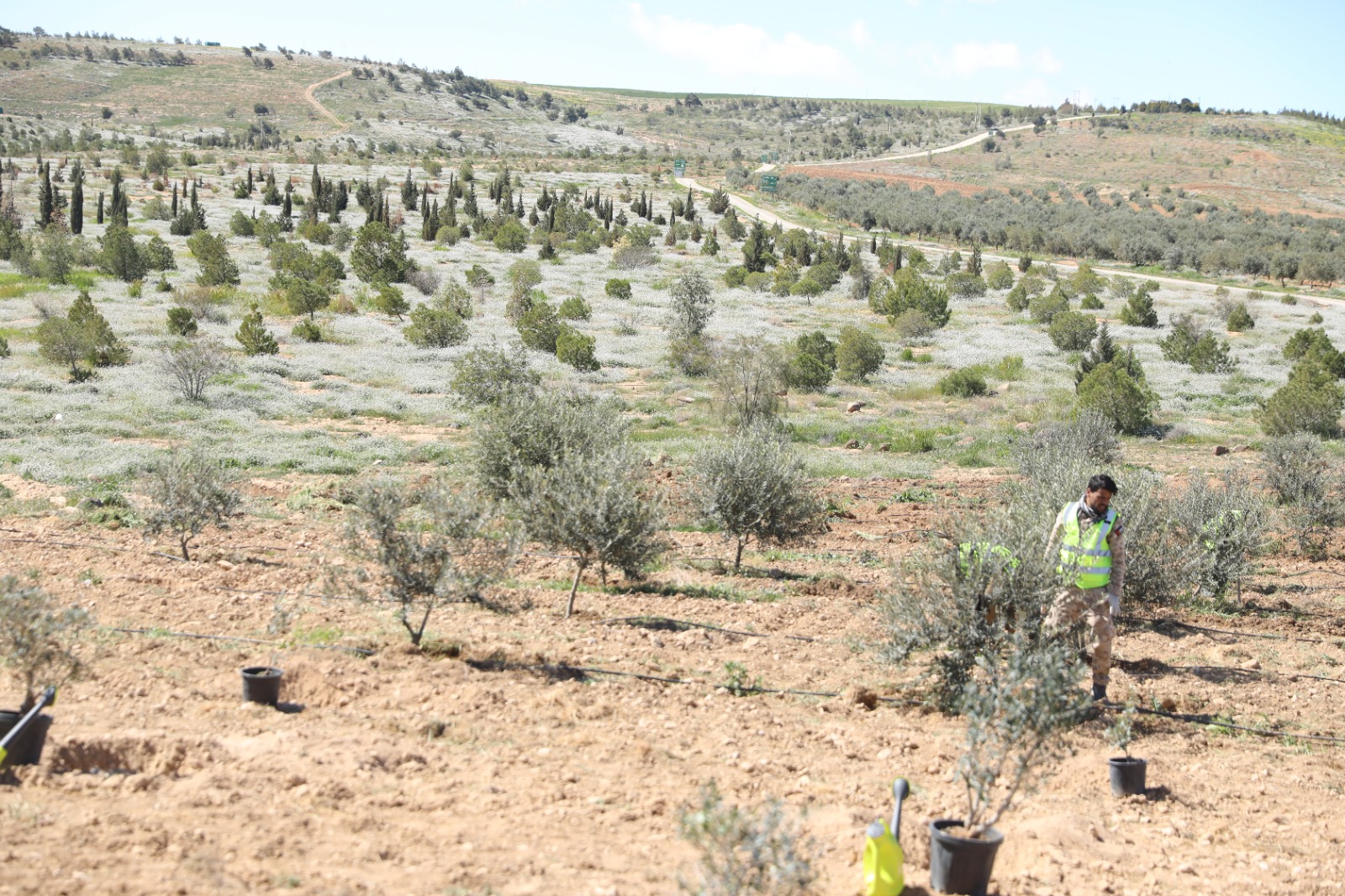 وخلال الجولة، تفقد العيسوي موقع جذور (1)وشارك بزراعة عدد من أشجار الزيتون، في تأكيد عملي على أهمية المشروع وأبعاده البيئية والوطنية.