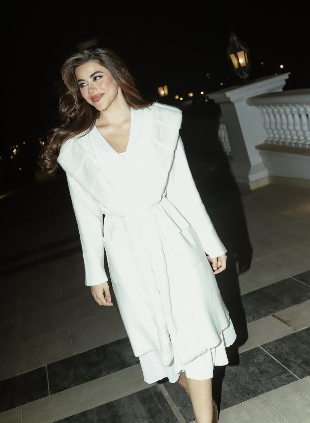 أيضاً تألّقت يارا في إحدى الإطلالات المميزة بفستان أبيض ناعم بطول متوسط، نسّقت معه معطفاً أبيض بدرجة مطابقة للفستان. وأكملت إطلالتها بحذاء أبيض بسيط بكعب عالٍ، وهي إطلالة مونوكرومية جذابة وناعمة، تعكس ذوقها وشخصيتها في اختيار الأزياء، مع الحفاظ على الطابع الأنثوي.