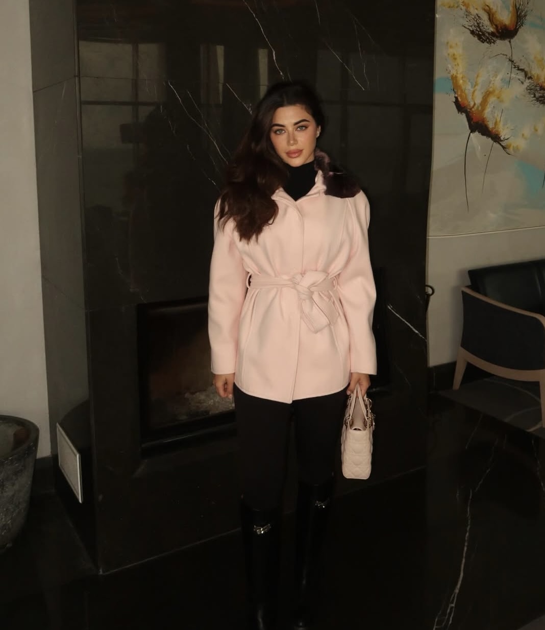 جمعت هذه الإطلالة ليارا السكري بين الأنوثة والفخامة؛ حيث ارتدت بلوفر أسود بياقة مرتفعة، وبنطلون أسود ضيّقاً مع بوت أسود طويل. ونسّقت معه جاكيت وردياً أنيقاً وبسيطاً يمنحها الدفء والرقة في نفس الوقت. ونسّقت معه حقيبة وردية متناغمة مع الجاكيت من ديور Dior.