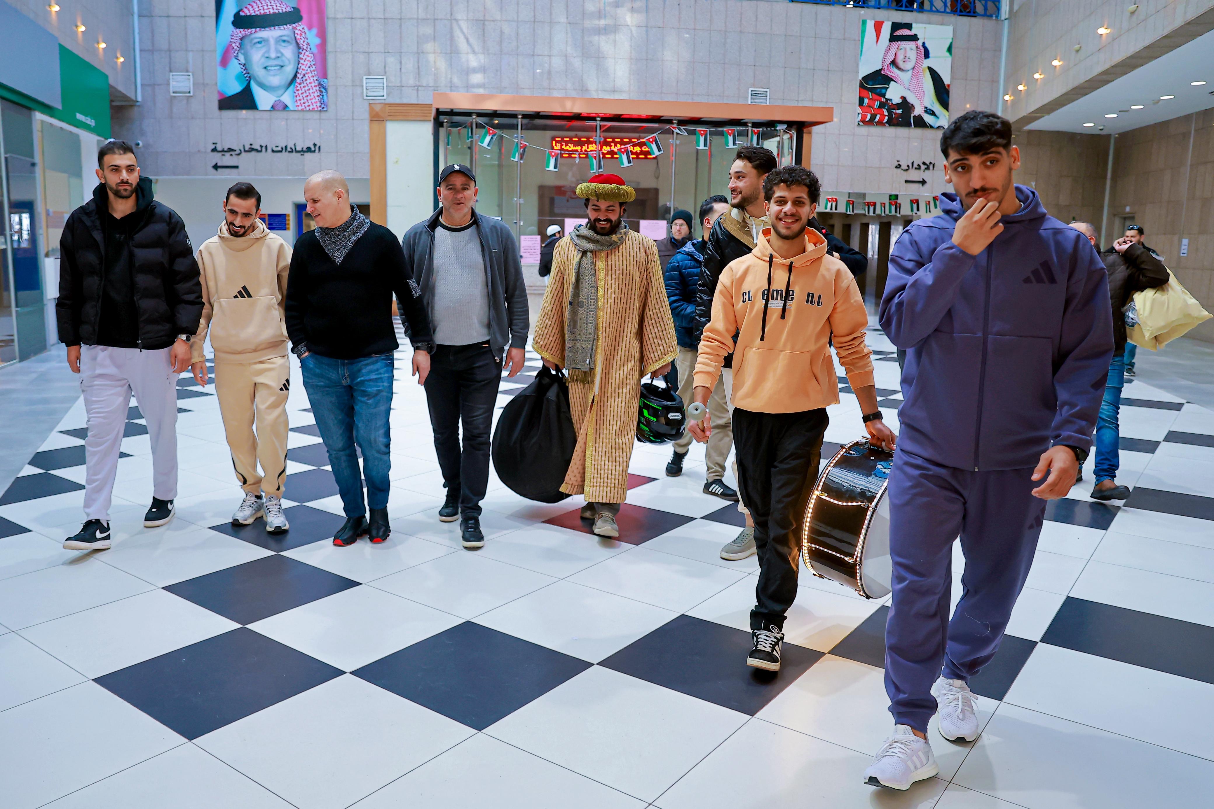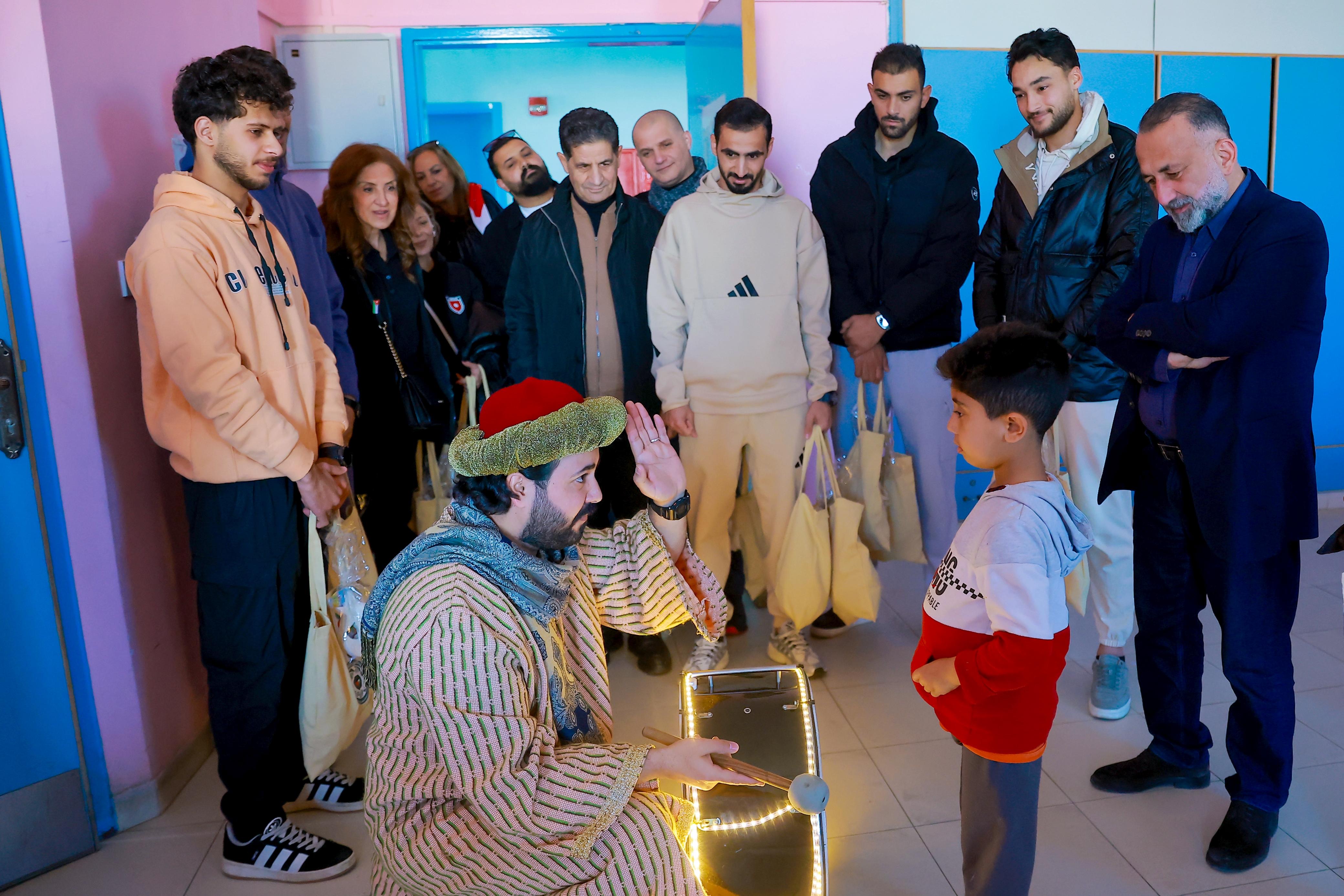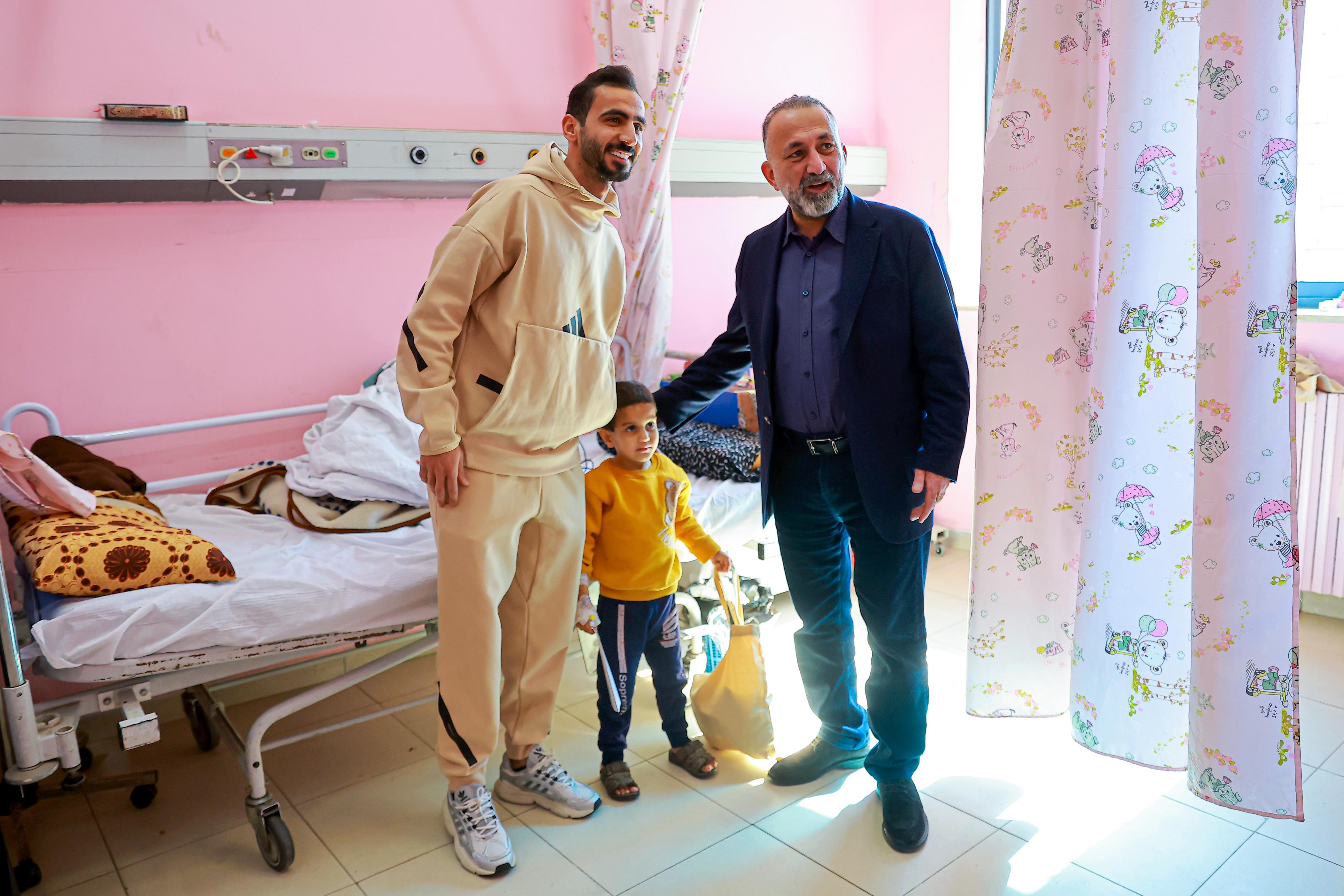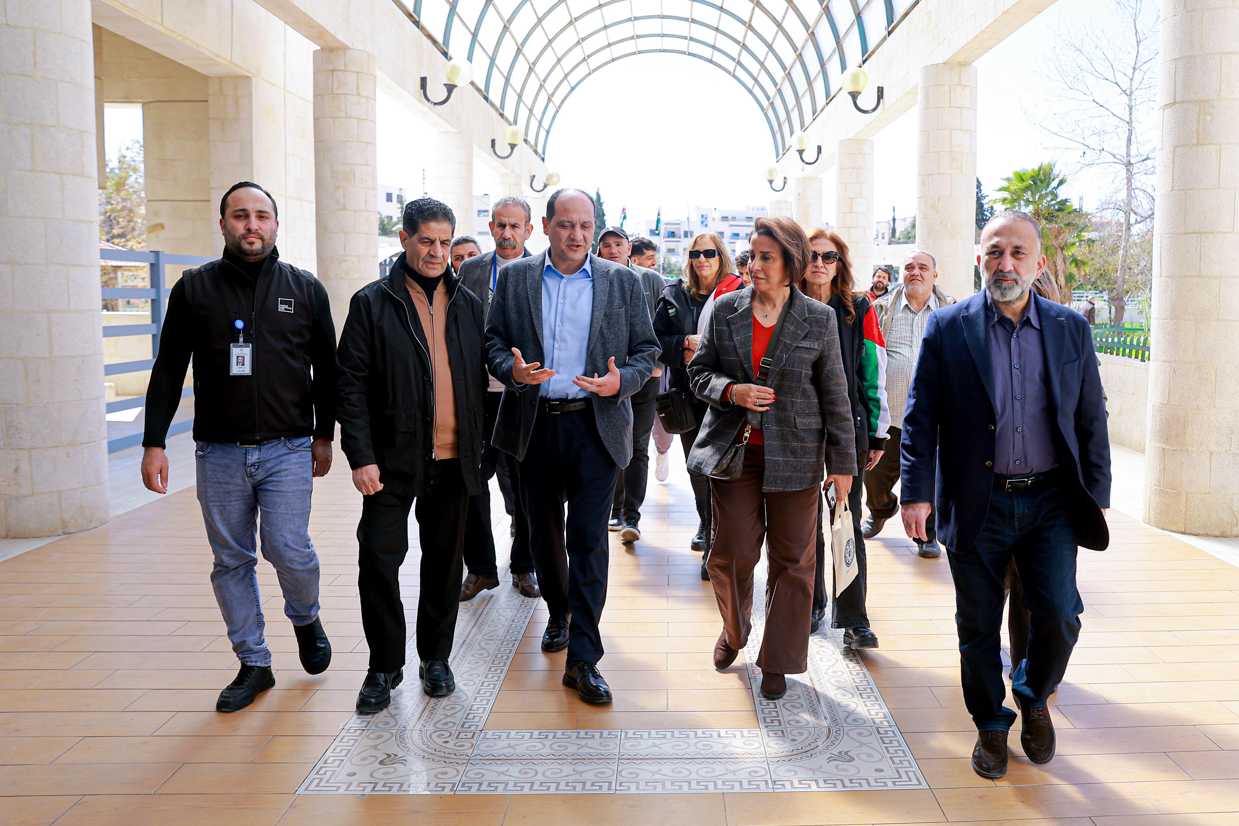واستقبال الوفد مدير المستشفى د. جهاد المعاني، قبل قيام لاعبي كرة القدم أحمد العرسان ومهند خيرالله وعبدالله الفاخوري ولاعبي الكراتيه محمد الجعفري ووسيم سلامه يرافقهم اعضاء مجلس إدارة الرابطة د. بشار الحوامده، والسيدة ايمان العزب رئيسة اللجنة الاجتماعية والأمين العام أحمد قطيشات وحضور أعضاء اللجنة الاجتماعية