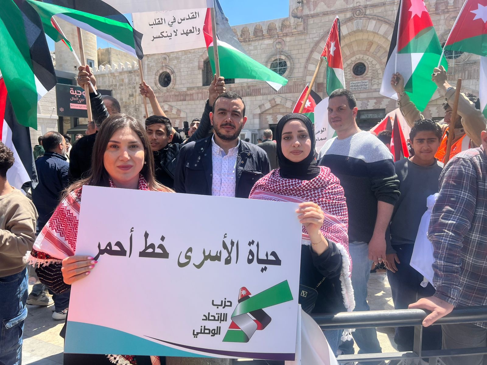 وأكد الحزب أن مشاركته الواسعة في المسيرة جاءت انسجامًا مع نبض الشارع الأردني الحر، ورفضًا لكل محاولات الاحتلال فرض مزيد من الجرائم والتشريعات العنصرية التي تستهدف الإنسان الفلسطيني، سواء في أرضه أو في معتقله أو في مقدساته، مشددًا على أن ما يُسمى بقانون إعدام الأسرى يمثل تصعيدًا خطيرًا وانحدارًا أخلاقيًا وسياسيًا وقانونيًا يكشف الوجه الحقيقي للاحتلال وسياساته القائمة على القمع والبطش والإرهاب المنظم.