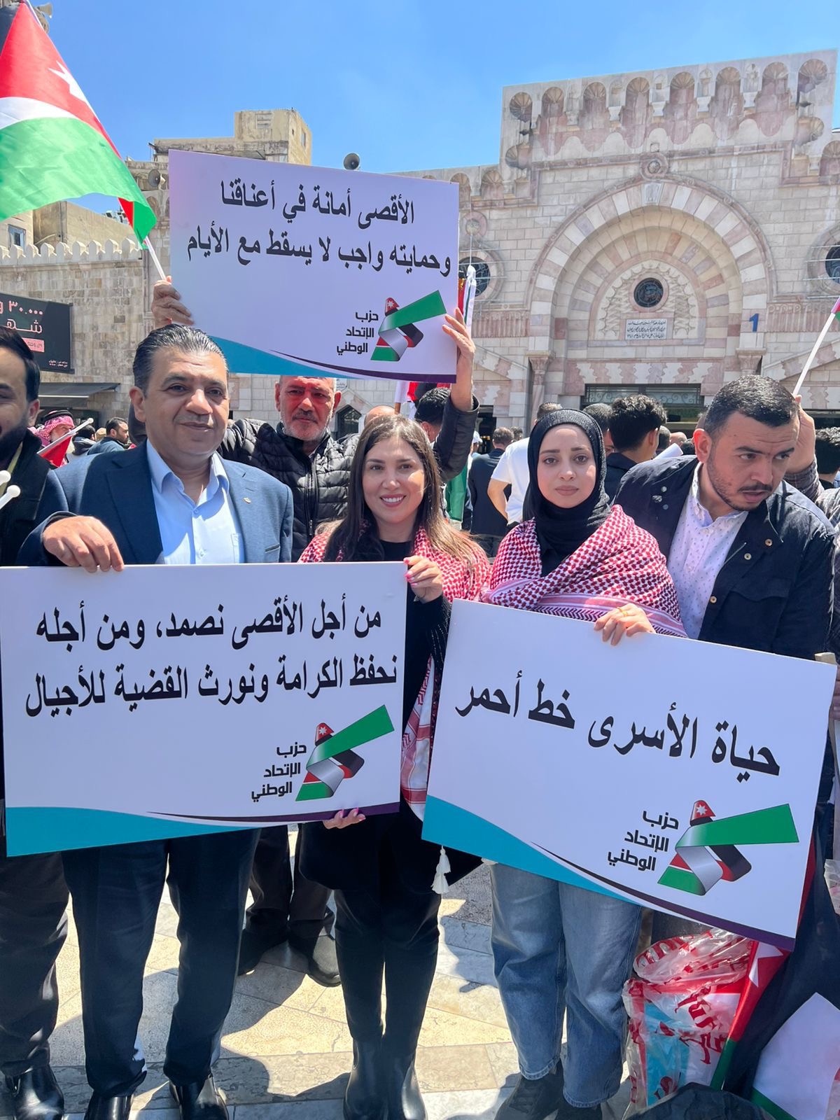 عمان جو-شارك أعضاء وقيادات ونواب حزب الاتحاد الوطني الأردني، اليوم الجمعة، في المسيرة التضامنية الحاشدة التي انطلقت دعمًا للموقف الأردني الرافض لما يُعرف بقانون إعدام الأسرى، وتنديدًا بالاعتداءات المتكررة على المسجد الأقصى المبارك والمقدسات الإسلامية والمسيحية، مؤكدين أن هذه المشاركة تعكس ثبات الموقف الوطني الأردني وانحيازه الكامل لعدالة القضية الفلسطينية وحقوق الشعب الفلسطيني المشروعة.