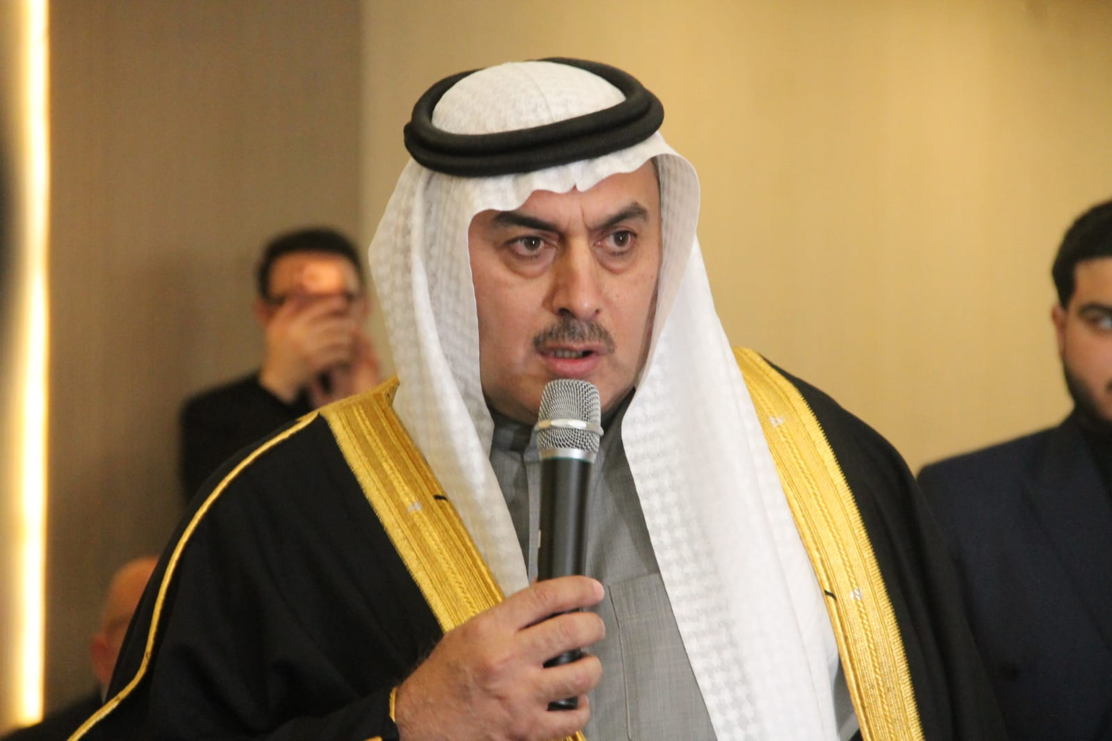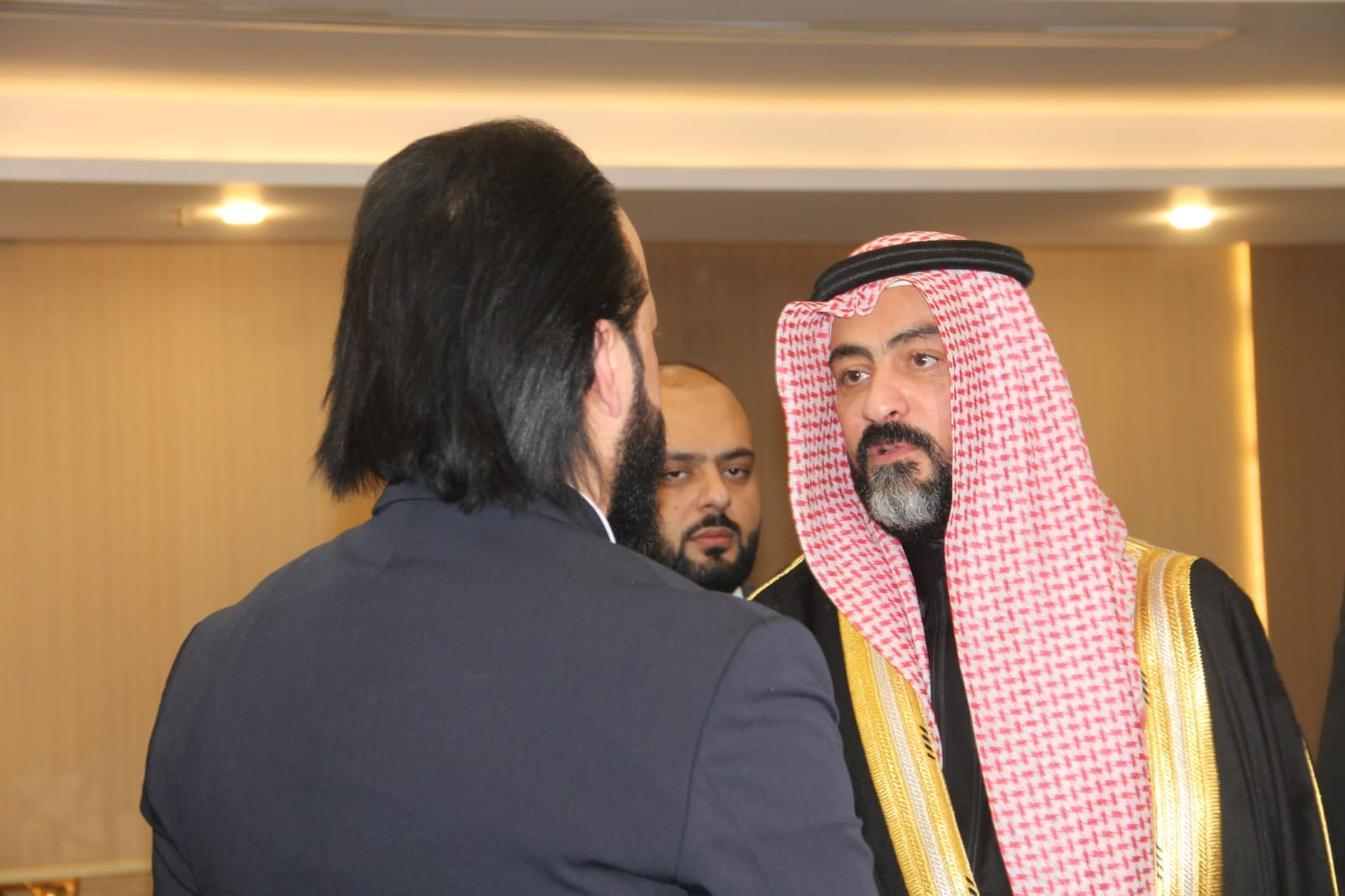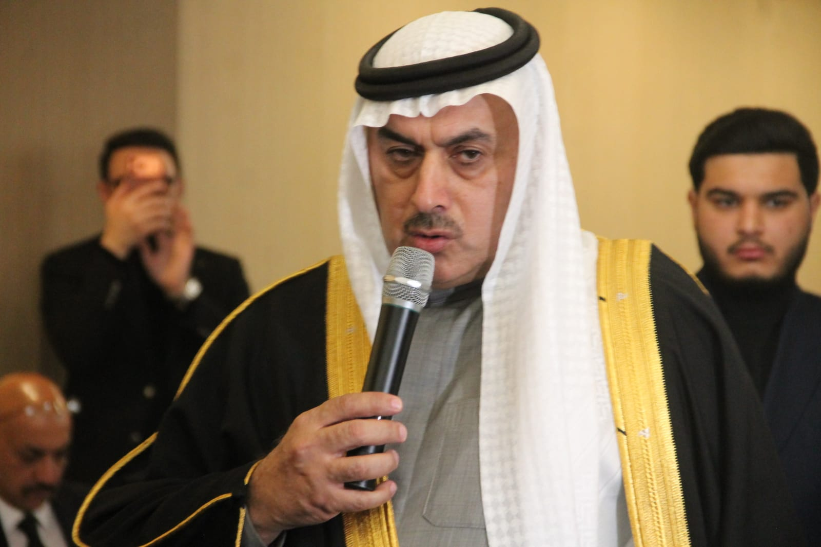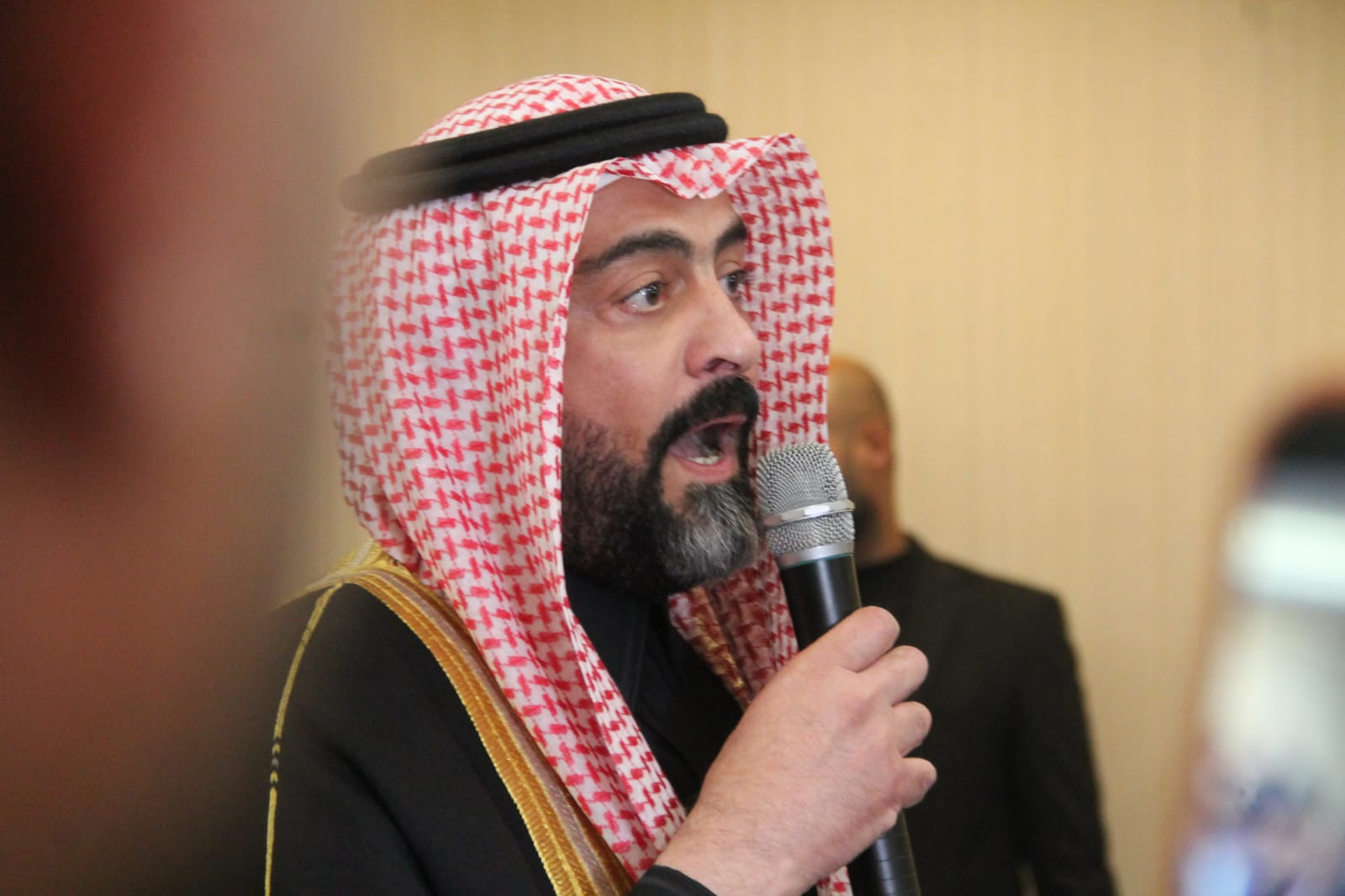 وطلب باسم الجاهة والد العريس الدكتور أحمد صاحب العبيدي، فيما رد عليه بالقبول الشيخ خالد العيطان.